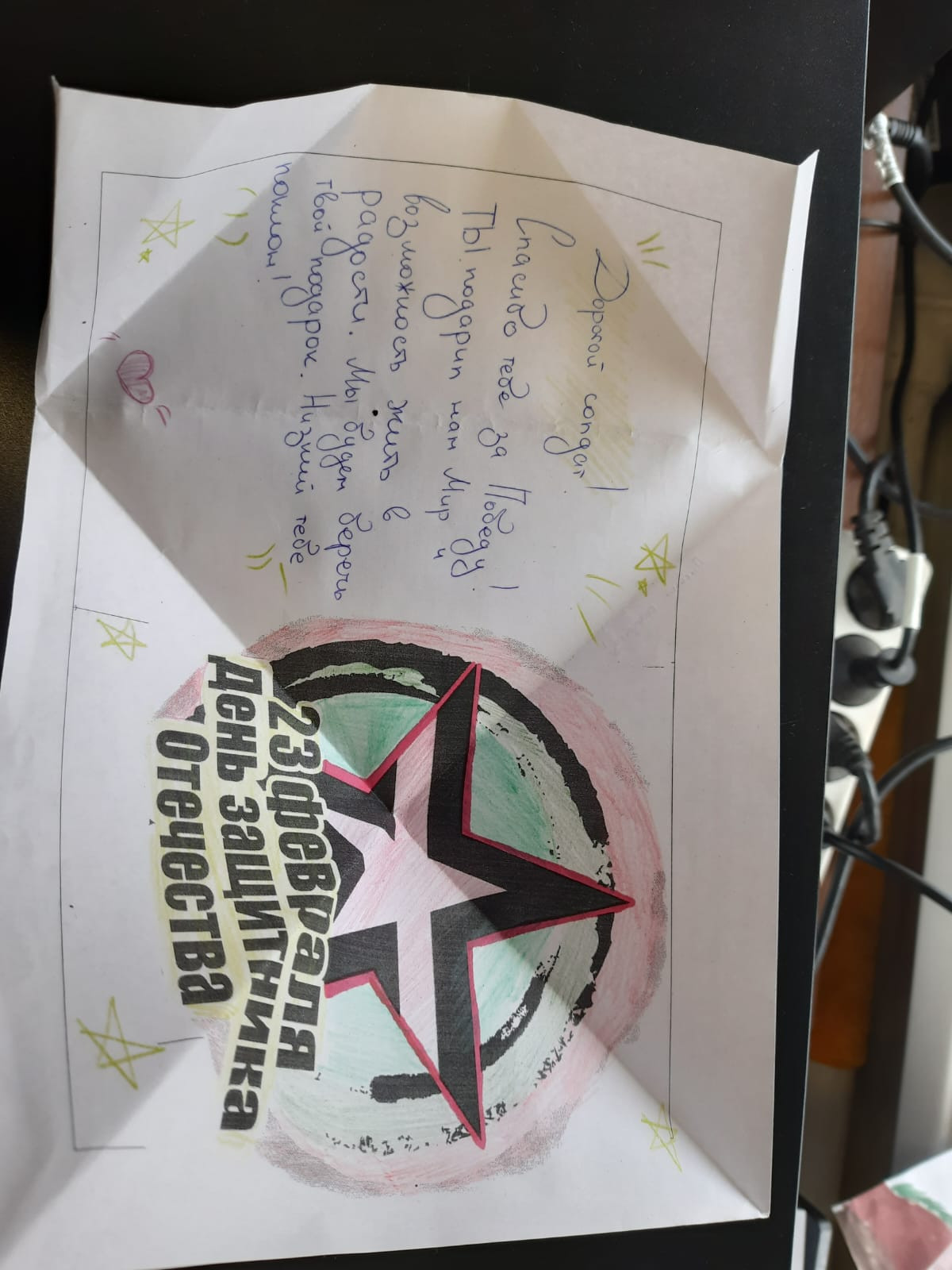 В нашей гимназии провели во всех классах конкурс песни " Песни в солдатской шинели" . Сегодня предложила ребятам посмотреть фильм " Честь имею". Вместе с офицером Российской Армии Артемовым С. А . После просмотра фильма,Станислаа Андреевич поговорил с детьми о качествах,которые имеют российские солдаты и офицеры. Вместе с ребятами мы собрали посылки солдатам и написали письма.Ребятам этот фильм очень понравился,особенно качества главного героя,доброта,честность.