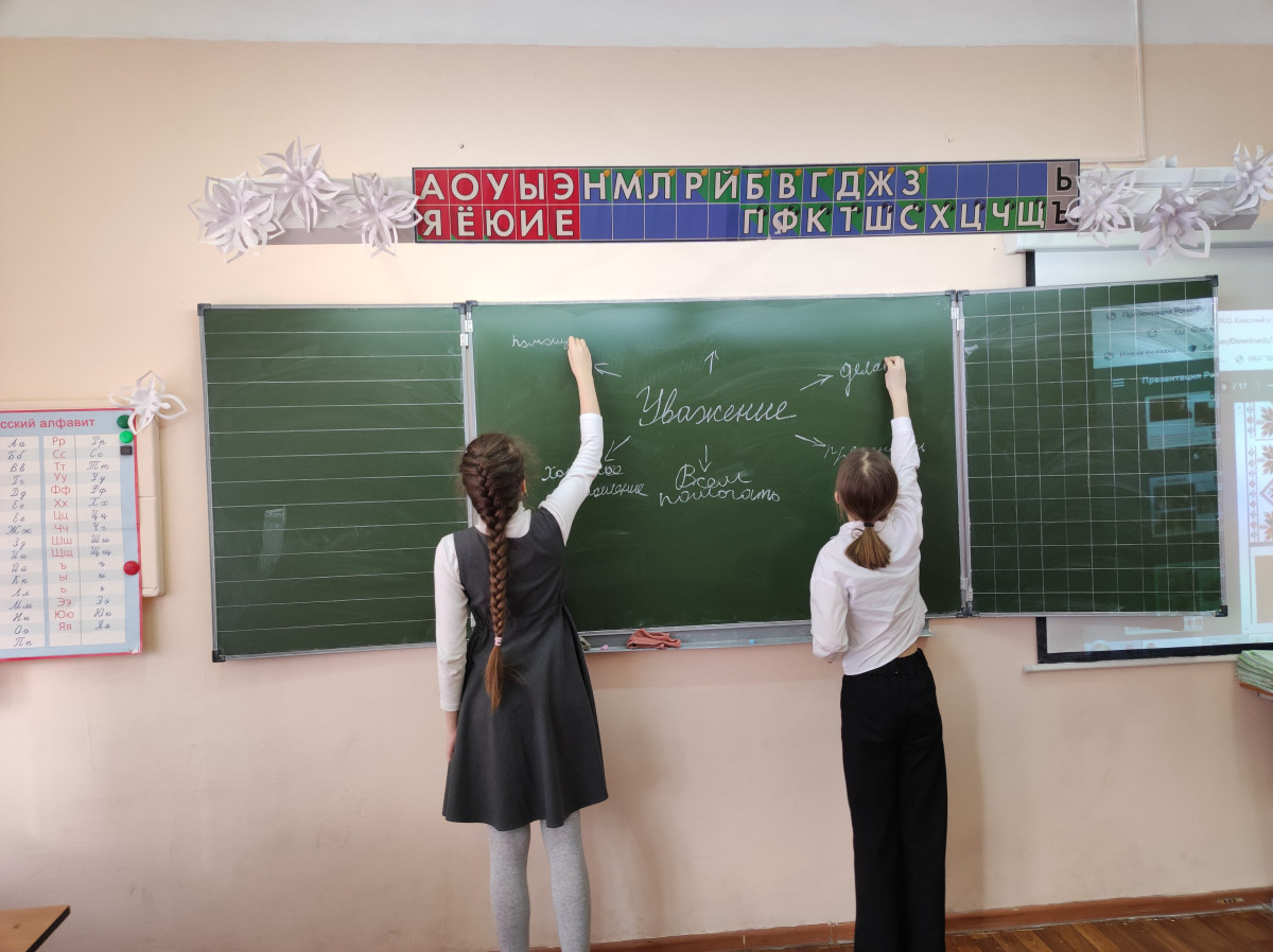 Как важно воспитать в наших ребятах такое простое, но очень важное качество — уважение. На уважении строятся отношения двоих, отношения в группе, в классном коллективе, в школе, в семье, в обществе в целом. Мы постоянно говорим ребятам о том, что нужно уважать старших, родителей, учителей и других людей. Инициатором практики выступила классный руководитель. После просмотра и обсуждения фильма, детям было предложено подвести небольшой итог того, что же такое уважение и в каких поступках и ситуациях людей оно может проявляться. Ребята пробовали передать свои мысли в рисунках . По итого мероприятия ребята пришли к выводу, что будут более внимательно, с пониманием относится к людям вокруг. Начнут с одноклассников, учителей, родных и близких.