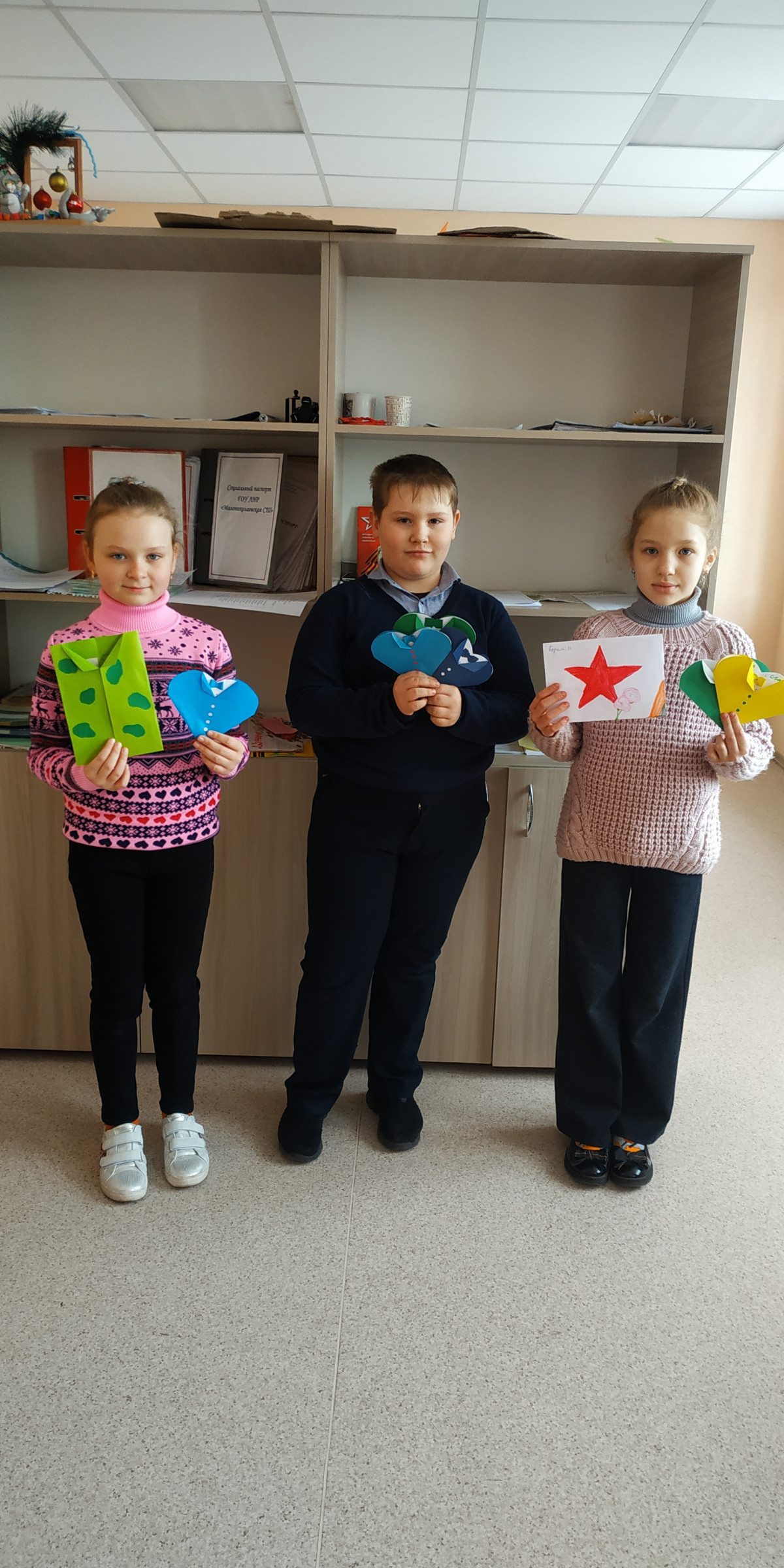 В рамках проекта «Киноуроки России» в 4 классе ГОУ ЛНР «Малониколаевская СШ» состоялся просмотр фильма «Наследники Победы». Для себя ребята сделали выводы, что людям всегда в любое время нужна помощь. Главное – надо уметь увидеть, в чем нуждается человек, и постараться помочь ему. Мы должны помнить, гордиться и никогда не забывать подвиг наших солдат, гордиться подвигом своих дедов и прадедов. В канун праздника 23февраля ребята решили побывать в роли солдат, приняли участие в спортивно - патриотической игре «Есть такая профессия – Родину защищать», сделали поздравительные открытки для защитников Отечества с пожеланиями, собрали гуманитарную помощь. Быть защитником своих близких, своей Родины – это святая честь для любого человека.