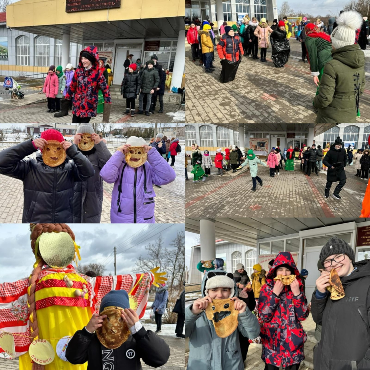 Наш праздник был пропитан народным колоритом: русские народные мелодии, пляски и хороводы, игры и забавы. Повсюду царила атмосфера радости и веселья. Девятиклассницы нажарили блинов для всех школьников и педагогов.