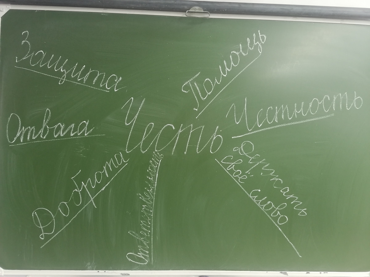 21 февраля 2023 года в рамках проекта "Киноуроки в школах мира" учащиеся 3 "А" класса просмотрели фильм "Честь имею" режиссёра Е. В. Дубровской. Перед просмотром фильма с ребятами прошла беседа о чести, честности. Сам фильм ученикам очень понравился. А после просмотра, беседа продолжилась. Ребята проанализировали кинокартину, а именно поведение героев, их поступки. Они пришли к выводу, что честь характерна не только офицеру, но и даже детям. Ведь они тоже понимают слово "честь". Все сделали выводы, что жить по чести - значит, уважать старших, помогать тому, кто в этом нуждается, быть честным. Какими же качествами должен обладать человек чести? На этот вопрос ребята ответили в конце занятия, выделив основные, по их мнению, качества, которыми должен обладать человек чести.