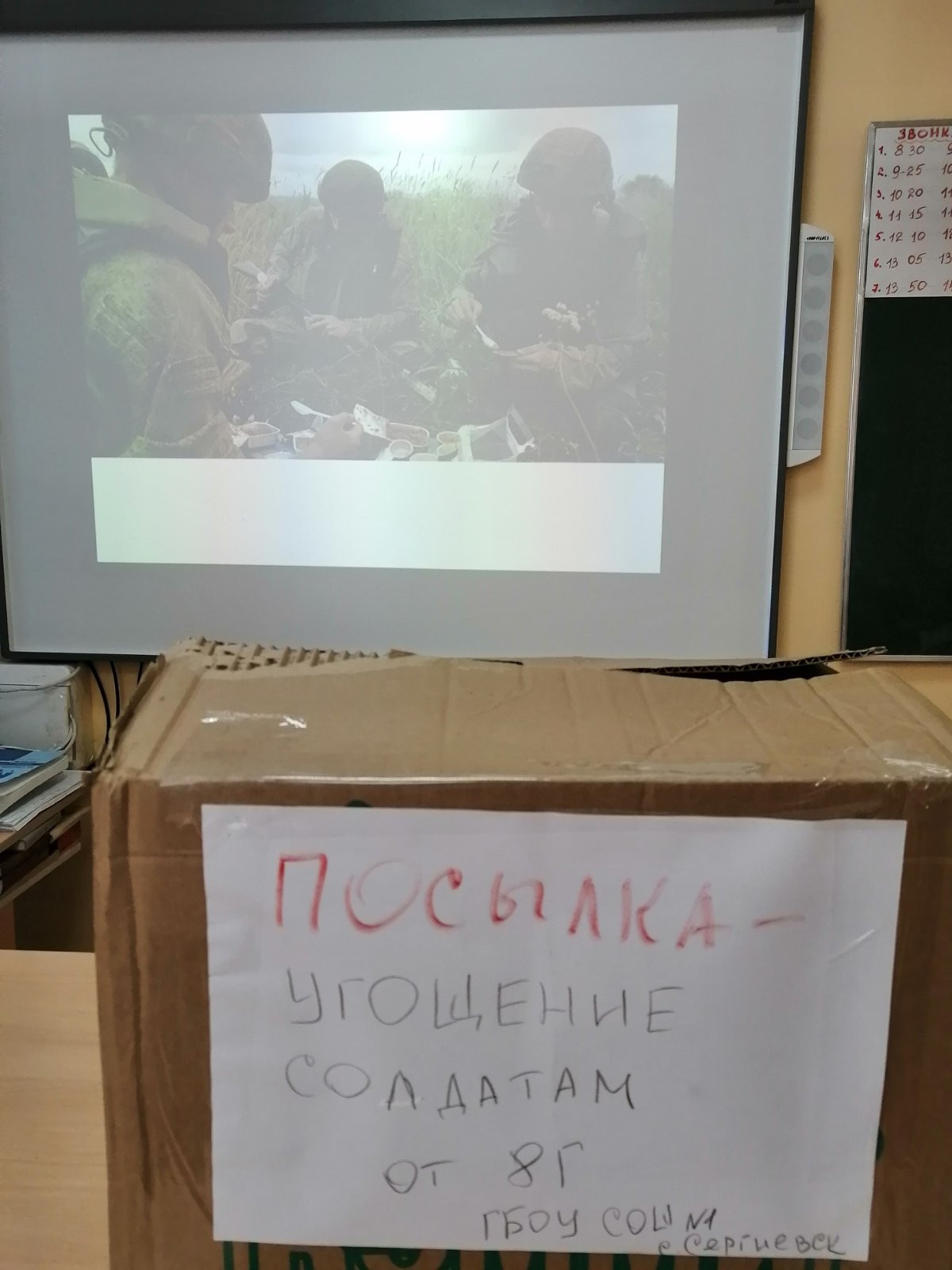 Обсудив и проанализировав фильм, ребята решили принять участие в акции «Посылка солдату». Ребятам захотелось поделиться частичкой тепла и заботы с нашими защитниками. Решили закупить сгущёнку и отправить солдатам. Помогли и родители.