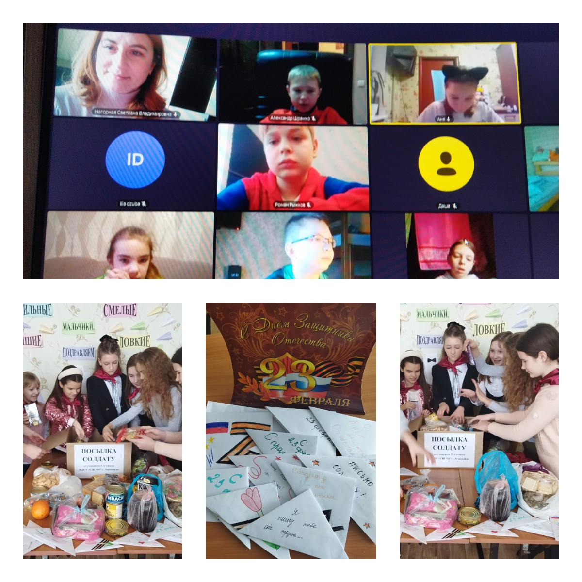 С помощью продуктов питания, писем и открыток ребята поздравили участников специальной военной операции с Днём защитника Отечества, выразили свою признательность за их смелость, мужество и самоотверженность.