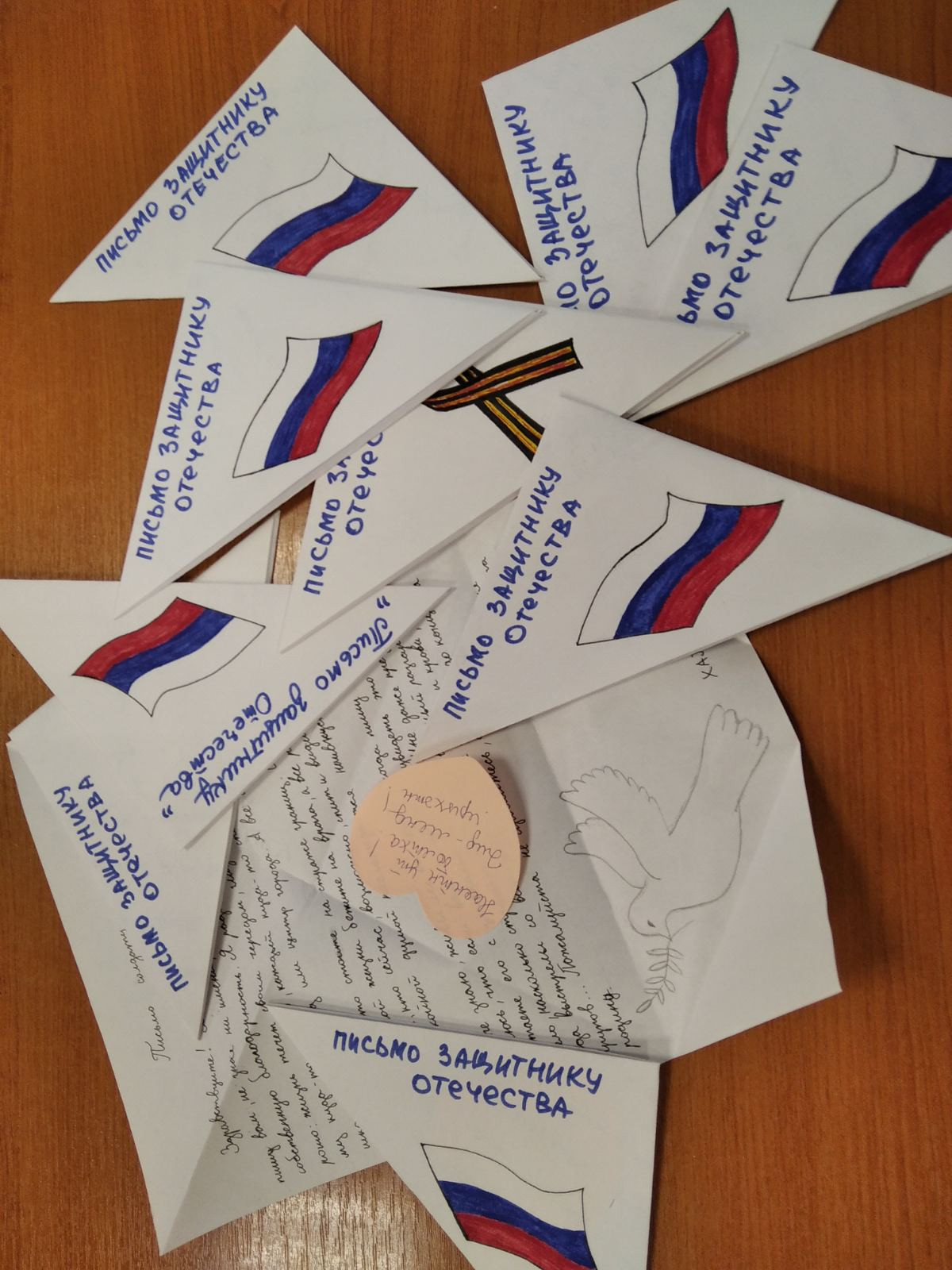 Администрация школы предложила ребятам поучаствовать в акции "Письмо защитникам Отечества". А культмассовый сектор класса заинтересовал всех просмотреть всем вместе фильм "Письма". После просмотра кинофильма ребята еще долго обсуждали разные моменты фильма, задавали вопросы, находили ответы. Что такое целомудрие, порядочность, искренность, дружба... Всем классом решили поздравить участников СВО с Днем защитника Отечества. Все написали письма с пожеланиями и словами благодарности воинам России.