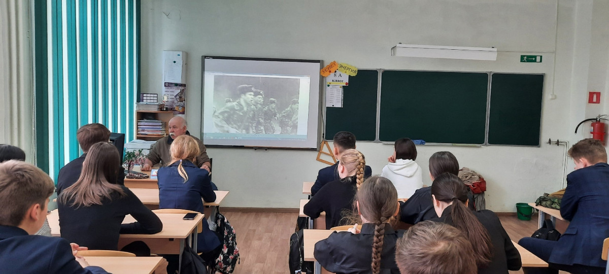 Сергей Николаевич также поделился воспоминаниями о службе, фотографиями и видеофильмами из личного архива о десантных войсках. В завершении встречи пожелал детям успешной учёбы, быть примерными и прилежными!