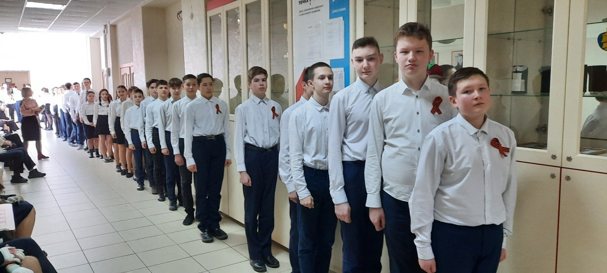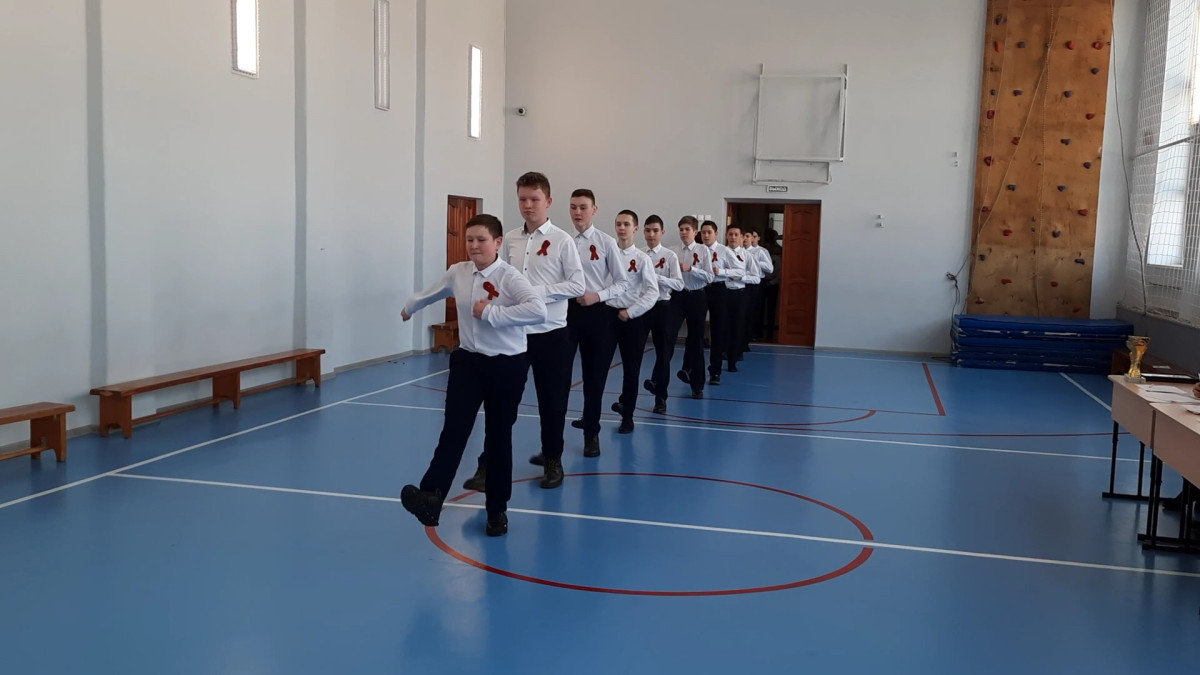 3. 22 февраля 2023 г восьмиклассники также участвовали в школьном смотр-конкурсе «Статен и строен – уважения достоин!» В течении месяца они усердно готовились к этому конкурсу, чтобы с достоинством защитить честь класса. Для маршировки выбрали песню Олега Газманова «Россия, Россия – в этом слове огонь и сила!» Ребята были горды тем, что выступили успешно.