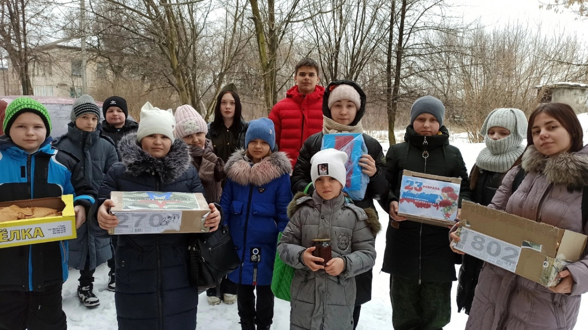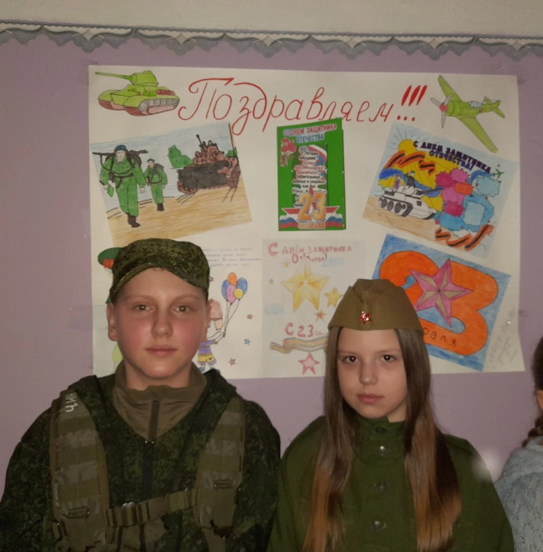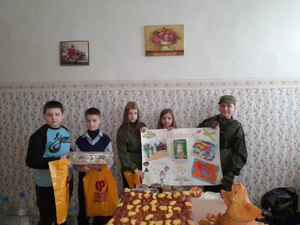 Поздравить защитников Отечества ,которые ранены и временно оказались не в строю , решили ребята 5-а класса,совместно с другими учениками школ поселка и райадминистрацией района .