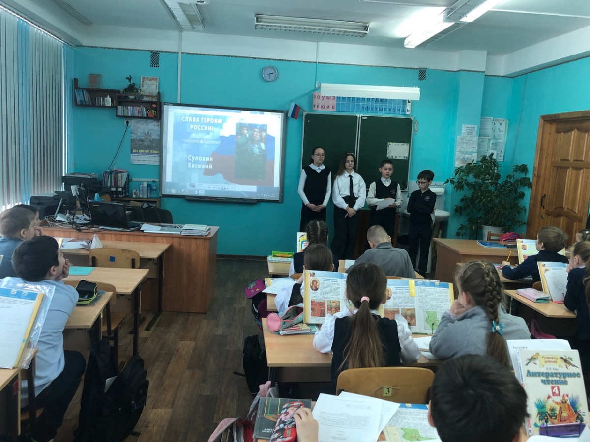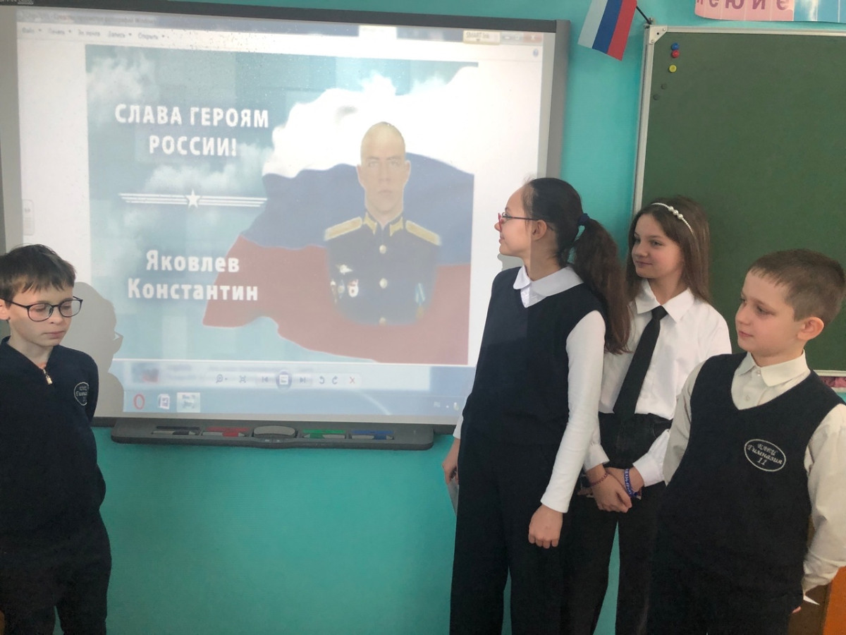 3. Просмотрев фильм, ребята решили рассказать младшим школьникам о том, что такое "смелость". В качестве примера, обучающиеся выступили с докладом о подвигах погибших в ходе военной операции соотечественников.