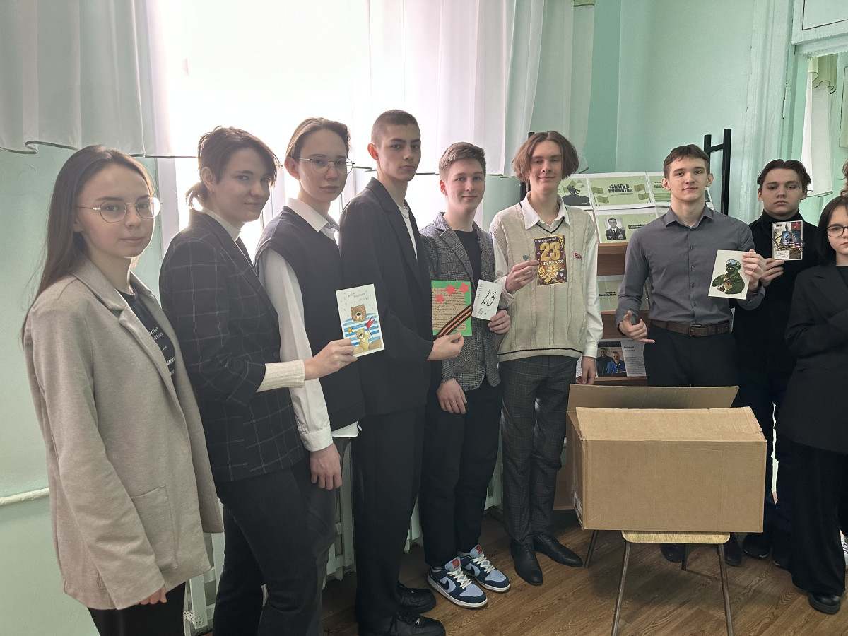 После просмотра фильма "Редкий вид" ребята решили , что в предверии Дня Защитника Отечества нужно вспомнить о тех, кого мы смело можно назвать " редкий вид" , кто защищает нашу Родину , нуждается в поддержке и предложили собрать гуманитарную помощь тем, кто находится на лечении в военном госпитале. Совместно с родителями собрали посылку , в которую положили предметы первой необходимости и продукты, а так же приготовили открытки, которые сделали своими руками.