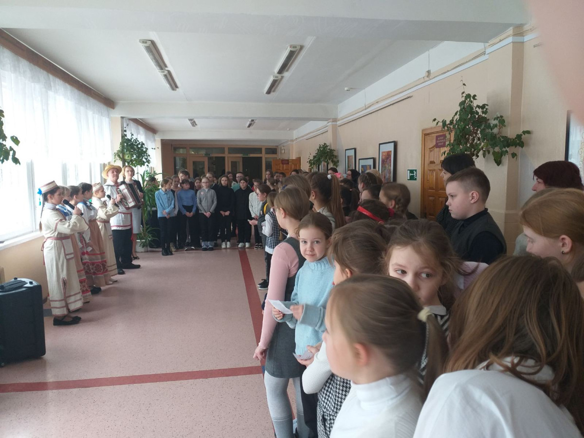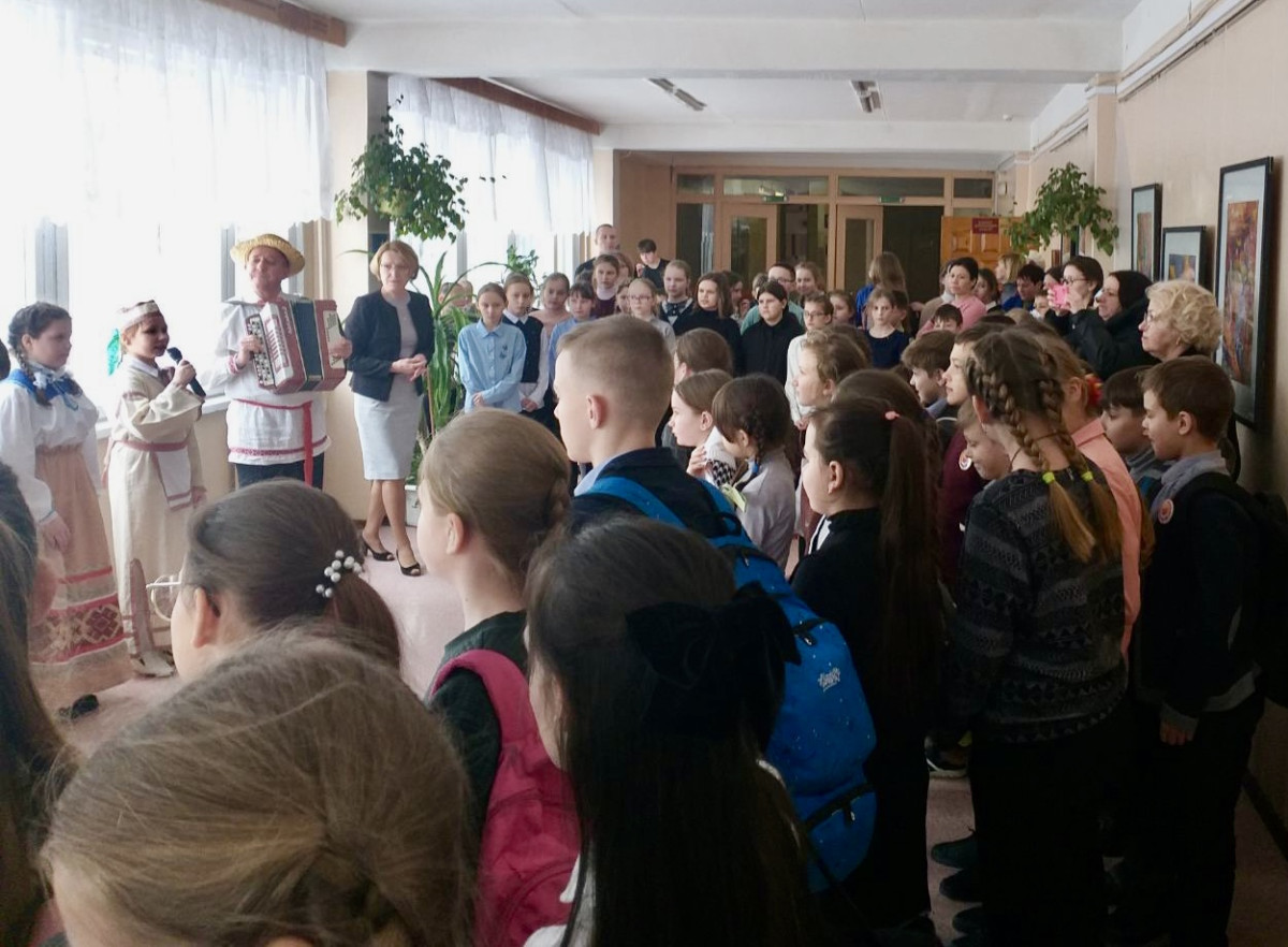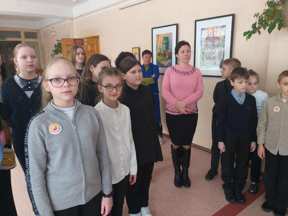 В 12.15 стали подходить маленькие и взрослые, собралось довольно много участников! И зазвучала белорусская песня! Звучала громко! Замечательные слова о любви к Родине, написанные более 100 лет назад, ярко и многоголосно звучали в стенах нашей гимназии в День родного языка! Было здорово! Ребята решили, что подобные акции необходимо повторять! И следующая будет организована к Дню Победы!