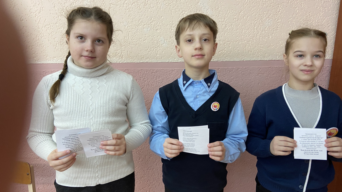 В день акции юные волонтёры 4А и 4Г классов обошли всю гимназию от учащихся до представителей администрации, всем раздали листовки! Ребята пригласили и представителей общественных организаций: РОО "Белая Русь", Белорусской пионерской организации, Белорусского Республиканского союза молодёжи, Красного креста, общества инвалидов, ветеранской организации.