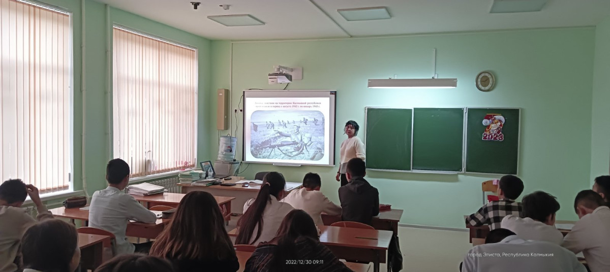 В 7 «В» классе МБОУ « СОШ № 17» имени Кугультинова Д.Н. проводился классный час в рамках проекта «Киноуроки в школах России», эпиграф к уроку был «Настоящий человек не стоит за ценой, не оглядывается, а делает, что должно. Чего бы это ни стоило»