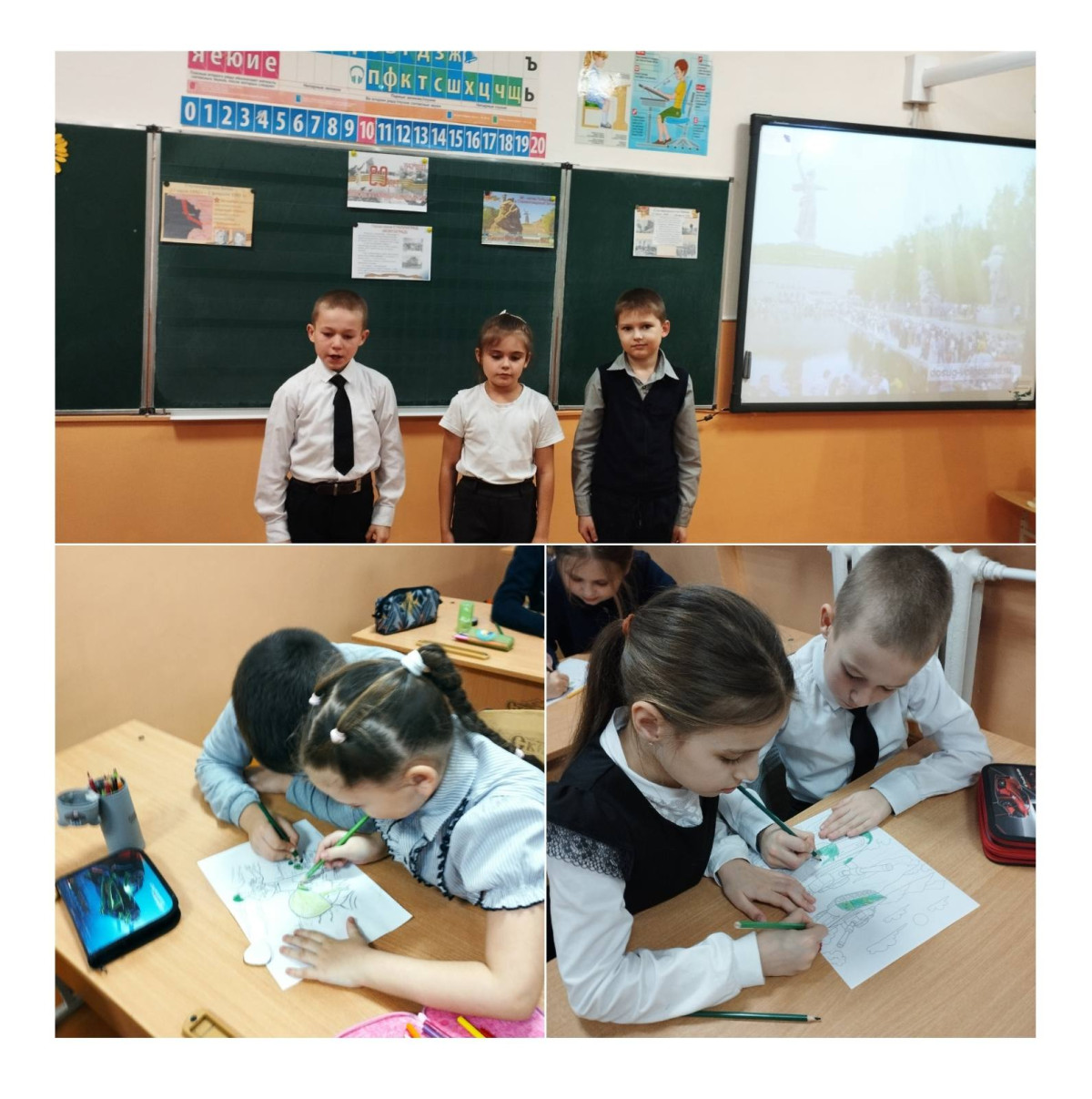 Начиная со 2 февраля дети начали принимать активное участие в различных мероприятиях: 80-летие Победы в Сталинградской битве (оформили выставку рисунков), к выставке привлекли 2-А, В классы, поучаствовали в Акции "Подарок солдату", поучаствовали в праздничном концерте "Армия - опора страны", провели классный час с просмотром презинтации "Родниковцы - участники ВОВ", поучаствовали в концерте ко Дню вывода войск из Афганистана. подготовили для участников СВО "Талисманы удачи".