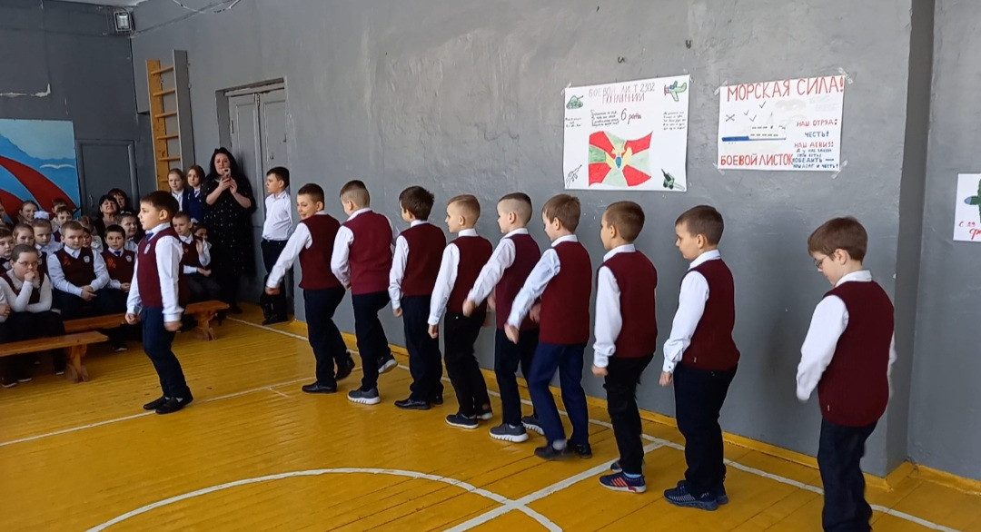 В рамках Всероссийского проекта "Киноуроки в школах России" в феврале учащиеся 1-го класса посмотрели фильм "Шайба" о доброте и мужестве. Смотрели с интересом. После обсуждения фильма ребята поняли , что всегда необходимо работать в команде, вместе побеждать, вместе брать ответственность. ! Класс принял участие в общешкольном конкурсе "Смотр песни и строя". Ребята пришли к выводу, что в любых ситуациях главное - не уронить честь и достоинство.