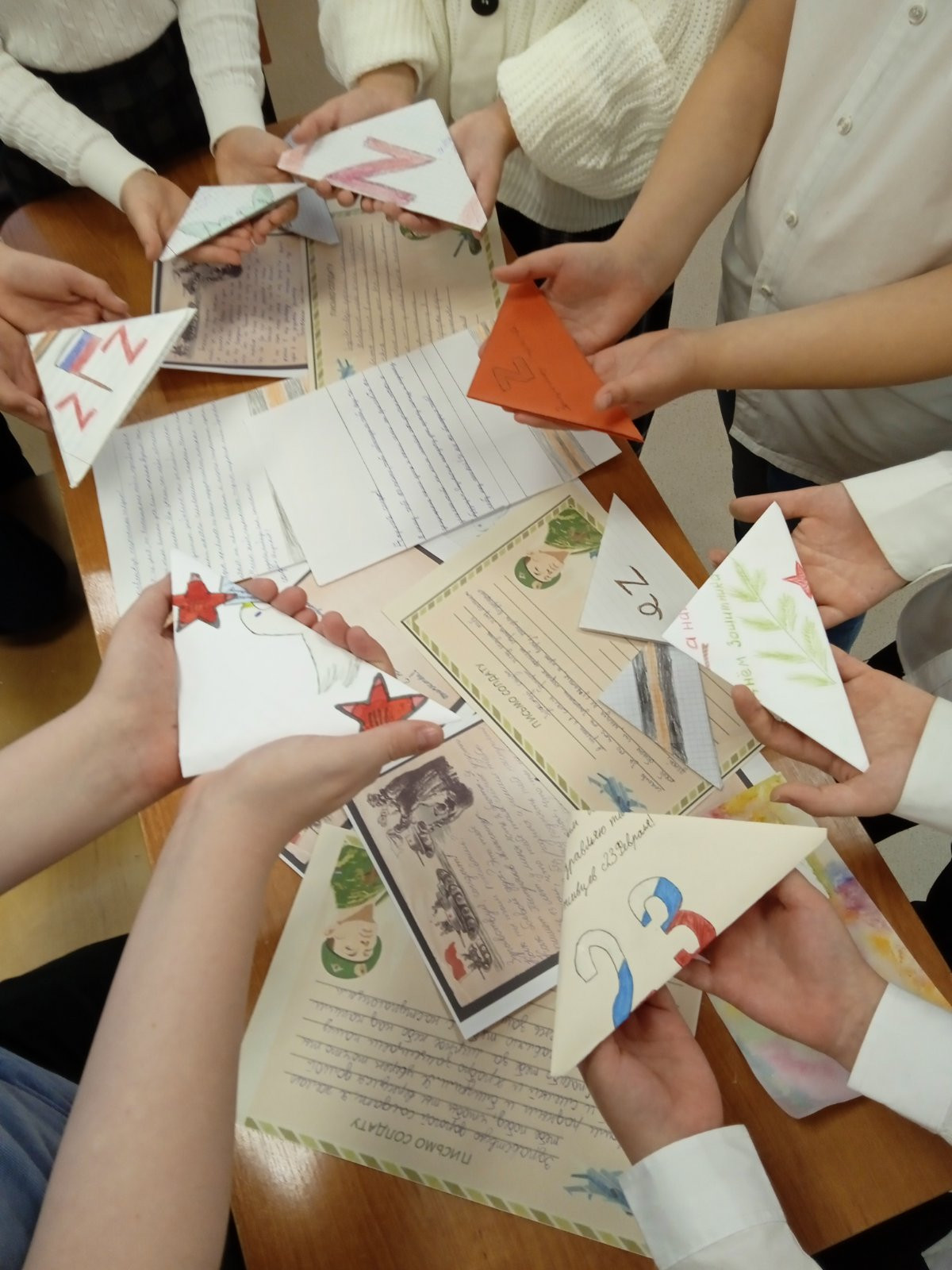 Учащиеся предложили идею - написать письма солдатам, в целях поддержки военнослужащих Вооружённых Сил Российской Федерации, выполняющих в настоящее время свой воинский долг по защите Отечества. Такие акции формируют и воспитывают ответственность и чувство гордости за нашу Родину.