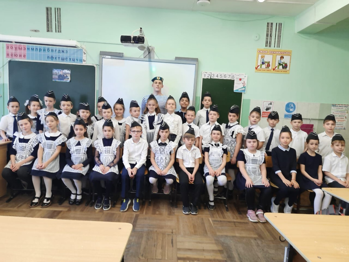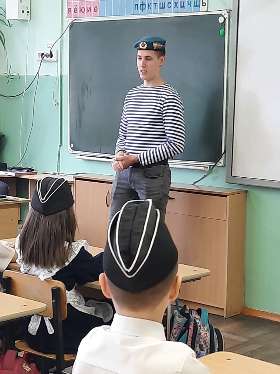 Папа - защитник, главный пример для подражания! Тема фильма - герой, пример для подражания, вдохновила ученицу 2 "А" класса Валерию пригласить своего папу, своего героя, познакомиться с классом. 22 февраля прошла встреча с Дубровым Семёном Андреевичем. Гость рассказал, как он служил в ВДВ г. Псков, кто такие десантники и как проходит служба. Ребят заинтересовало то, как учат молодых парней прыгать с парашютом. Ребята слушали с интересом. Задавали вопросы.