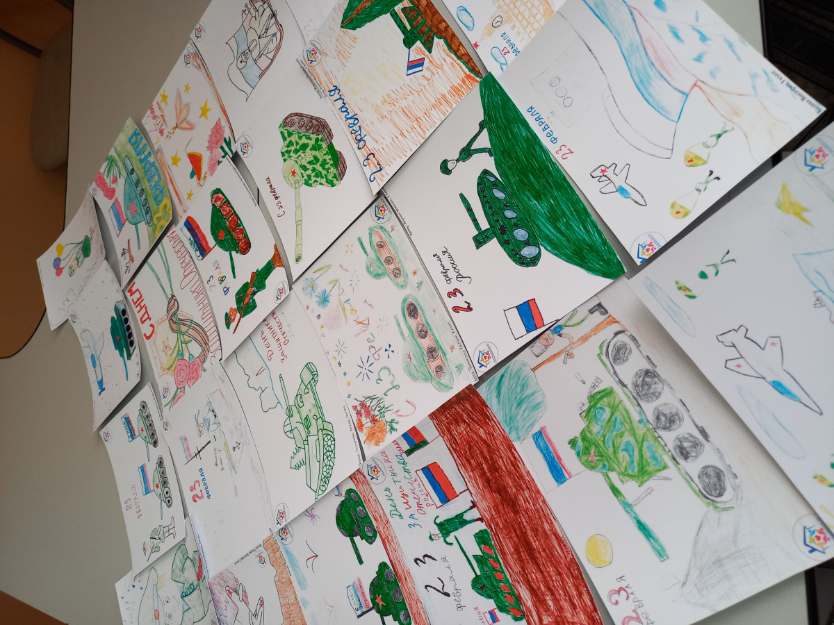 В качестве практики, дети решили поздравить с Днём защитника Отечества, поддержать их и ободрить тех солдат, которые находятся на поле боя, нарисовав поздравительные открытки. Тем самым проявить свои таланты и усердие в выражении доброго дела.
