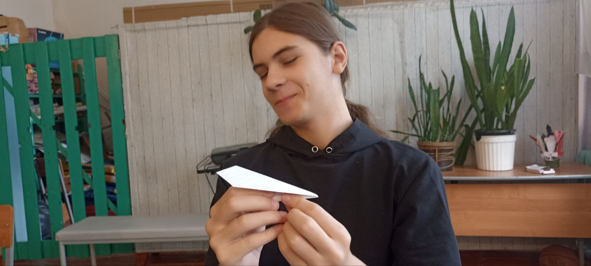 Ученик 9 класса Степанов Антон просмотрел фильм "Крылья", предложенный клыссным руководителем. Этот фильм оставил неизгладимые впечатления и приятные воспоминания, смотивировал на позитивное восприятие жизни. После просмотра фильма ученик загадал желание и написал на листке его, чтобы запустить самолетик - желание.