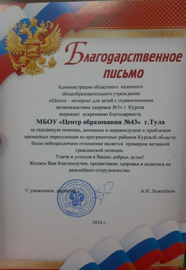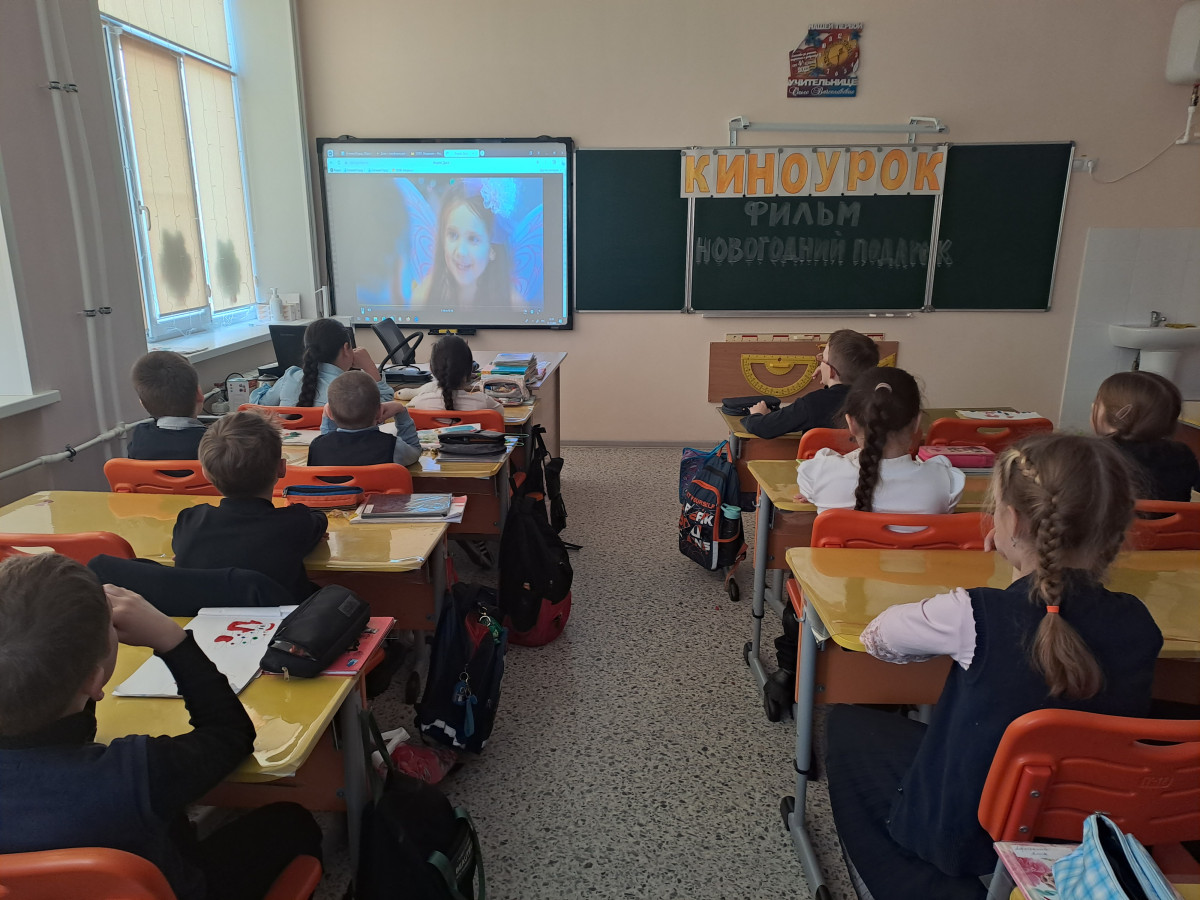Фильм "Новогодний подарок" заставил задуматься детей над настоящими ценностями. Ребята стали предлагать слова для поздравлений своих близких с праздником. В ходе беседы выяснили, кому в настоящее время приходится труднее всего, кому необходима помощь и тёплые слова. Решили присоединиться к сбору помощи детям с ограниченными возможностями школы -интерната города Курска, находящихся в пункте временного размещения. Присоединились родители. Школьники нарисовали рисунки для детей. Позже школе пришла благодарность.