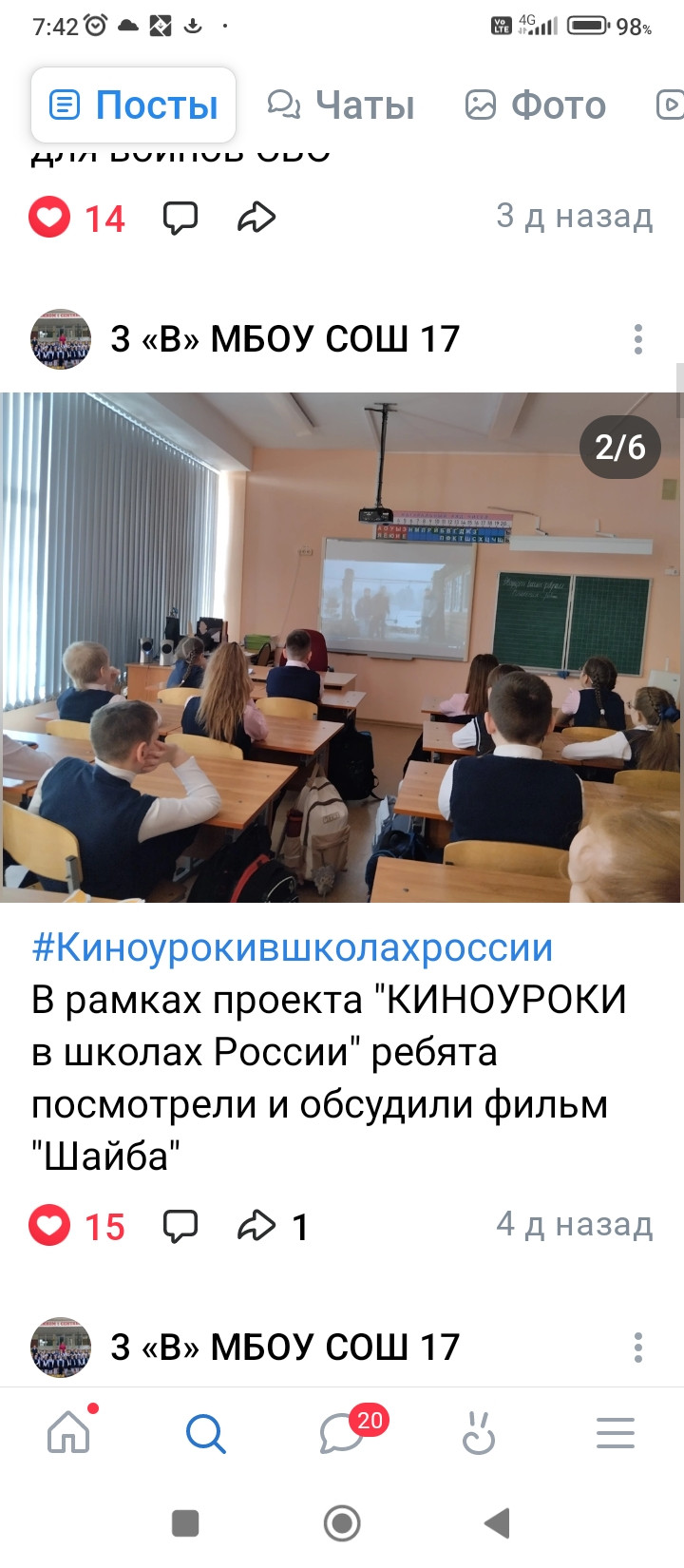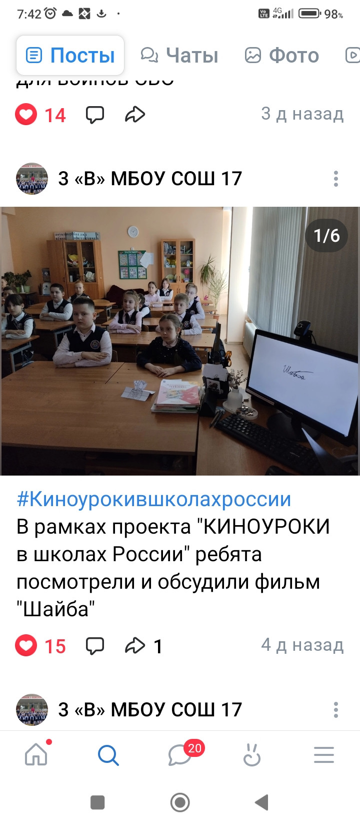 В рамках проекта "Киноуроки в школах России" ребята 3-В класса просмотрели фильм "Шайба".Фильм был основан на нравственных понятиях: мужество, терпение, ответственность за свои поступки, умение доводить начатое дело до конца, не сдаваться, не отступать перед трудностями. Митька – простой деревенский мальчишка семи лет, мечтающий быть похожим на своего старшего брата Пашку, капитана хоккейной команды «Солнечные». Перед самым ответственным матчем Пашка просит младшего брата принести на лед шайбу, но Митька неудачно падает, и на глазах двух команд шайба тонет в небольшой лунке. У него есть только полчаса, или «Солнечным» засчитают техническое поражение. После просмотра художественной картины началось активное обсуждение содержания киноленты. Ребята определили главную мысль короткометражного фильма «Шайба»: «Никогда не сдавайся, как бы тяжело тебе не было. Будь мужественным, терпеливым, ответственным за свои поступки. Побеждай свои нехорошие качества характера, работай над собой».После обсуждения фильма ребятам особенно запомнилась фраза " Мужество-это когда ты не думаешь о себе, а думаешь о других".Ребятами было предложено изготовить подарки мамам и бабушкам, тем самым проявить заботу о близких людях.