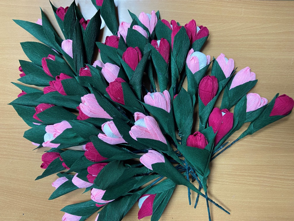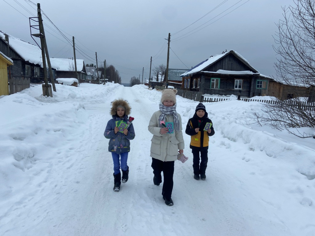 «А что мы можем сделать для других? Чем порадовать людей?» – задумались мы. Вот мужчины на СВО защищают нашу страну, а мы как можем их поддержать? "Поздравить их мам и жен с 8 марта!"- предложили ребята. Ведь у тех солдат, кто на передовой, нет такой возможности, а еще у нас есть семьи, где защитники погибли., кто поздравит их семьи? Раз творчество дарит радость, то первая мысль пришла сразу: творческие номера на сцене клуба для всего населения, воплотить идею в жизнь ребятам помогли специалисты Вятского Дома культуры. А второе предложение: изготовить своими руками к 8 марта цветы и поздравительные открытки, для ветеранов, а также матерей и жен участников СВО, а в этом нам помогали классные руководители, финансовую поддержку в покупке материалов охотно оказали родители. 7 марта ребята посетили семьи участников СВО вручили свои подарки женщинам, которые были нашим поздравлениям и встречали ребят улыбкой. И для всех женщин страны наши мальчишки спели песню "Дарите женщинам цветы"!