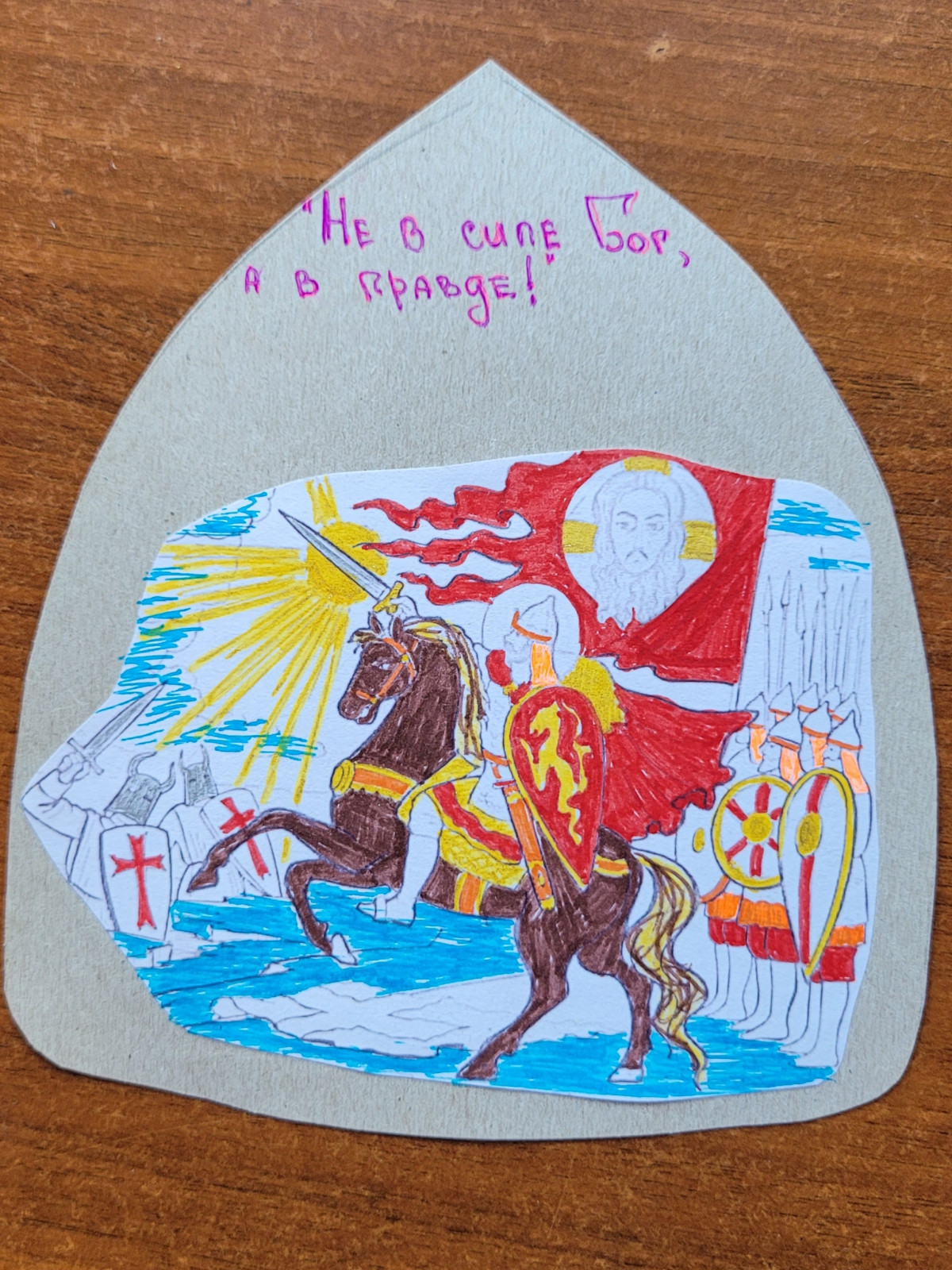 3. До просмотра дети были игривы, а некоторые и шаловливы. По окончании просмотра ребята стали вдумчивыми, серьезными и рассудительными, будто повзрослев. "Щиты добра" подарят защитникам Родины теплоту детских рук, которыми школьники заботливо мастерили открытки. Добрые слова поддержки будут светит лучиком надежды в измученные войной сердца, доблестный пример и покровительство святого благоверного князя Александра Невского будут вселять в души воинов веру в победу и наступление долгожданного мира во имя счастливого будущего Великой державы.