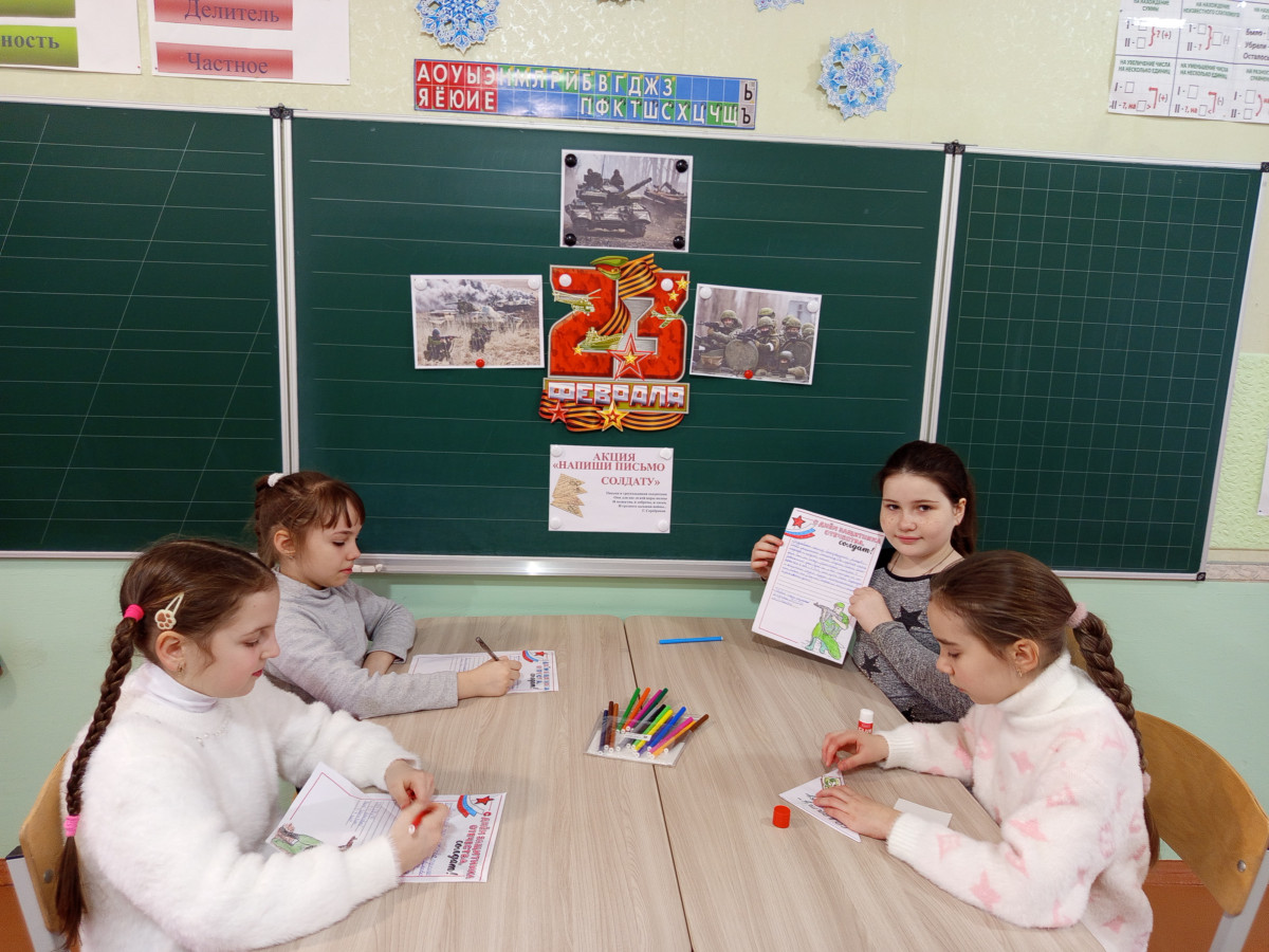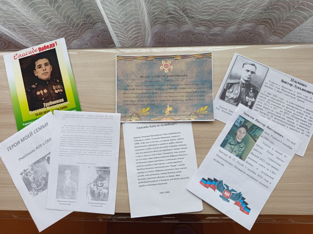 Ребята отметили у главного героя положительные качества, как смелость, силу воли, дружелюбие, порядочность, честность. Учились преодолевать самих себя, все свои страхи, пороки, трудности наши защитники в годы Великой Отечественной войны и в данное время бойцы СВО. Это и стало продолжением нашей дальнейшей работы. Из занятий «Разговоры о важном» школьники знают, что Президент России объявил 2025 год «Годом защитника Отечества». В этом году наша страна отмечает 80-летие Великой Победы. Тематическое украшение окон «80 дней до Победы», классные часы о Сталинградской битве, блокадном Ленинграде, посещение фото-экспозиции в местном доме культуры «Герои-земляки в годы Великой Отечественной войны», участие в акции «Напиши письмо солдату» способствовали выбору общего коллективного дела. На одном из классных часов я рассказала своим ученикам о герое своей семьи в период ВОВ, о своём дедушке и задала вопрос «А вы знаете героев своей семьи?» Таким образом, была обозначена проблема, которую нужно решить. Сейчас ребята занимаются поисковой работой в этом направлении. Собирают информацию об участниках ВОВ и СВО своей семьи. Помогают им в этом родители, родственники старшего поколения. В оформлении материала задействованы старшие братья и сёстры. Классный коллектив принял решение создать книгу «Герои моей семьи: участники ВОВ и СВО» для школьного музея. Оговорен срок выполнения – ко Дню Победы. Работа уже ведётся.