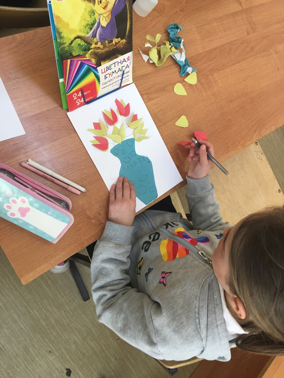 Идея сделать поздравительные открвтки в предверии празднования 8 марта и поздравить бабушек, которые находятся в доме престарелых, очень понравилась ребятам и они начали их изготавливать с большим энтузиазмом.