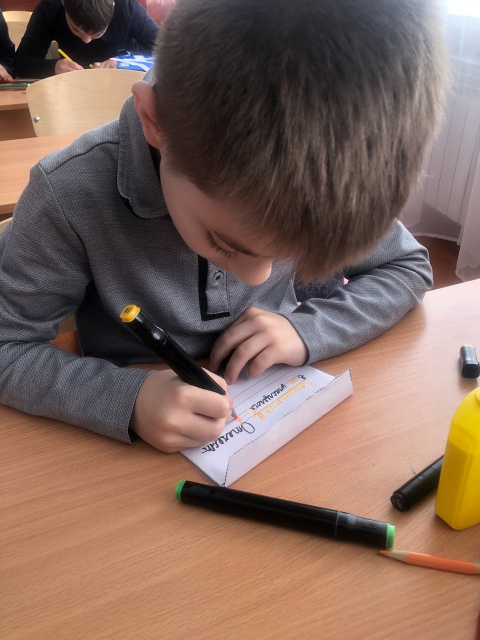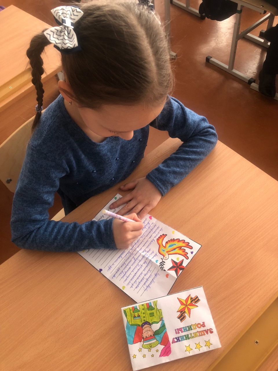 С любовью, трепетом заклеивали ребята письма. Многие ребята представили военных в тот момент, когда они будут раскрывать письма. С сожалением думали о том, что не знают, кто прочитает письмо.