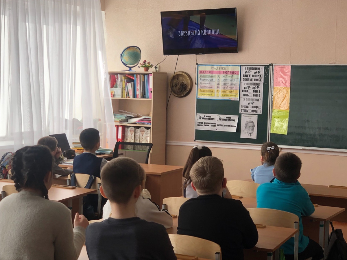 Учащиеся 3-А класса в рамках Международного проекта «Киноуроки в школах России» посмотрели фильм «Звезды из колодца». Перед просмотром фильма беседовали. Ребята размышляли над таким человеческим качеством, как смелость. Начали с того, что вспомнили слова-синонимы «смелость – трусость». Предположили, что смелость выражается в том, что человек может совершать смелые поступки, например, спасти кого-то. Чего же боятся люди? Боязнь высоты, злобных собак, пауков, темноты, полета в самолете. Некоторые ребята, сказали, что существует боязнь отвечать у доски. А как же побороть трусость, боязнь? Были предложены разные варианты. Один из них – каким-то способом побороть себя. Учитель предложила посмотреть фильм «Звёзды из колодца» и попробовать понять, каким же способом главный герой фильма решил эту проблему. Кто ему помог?