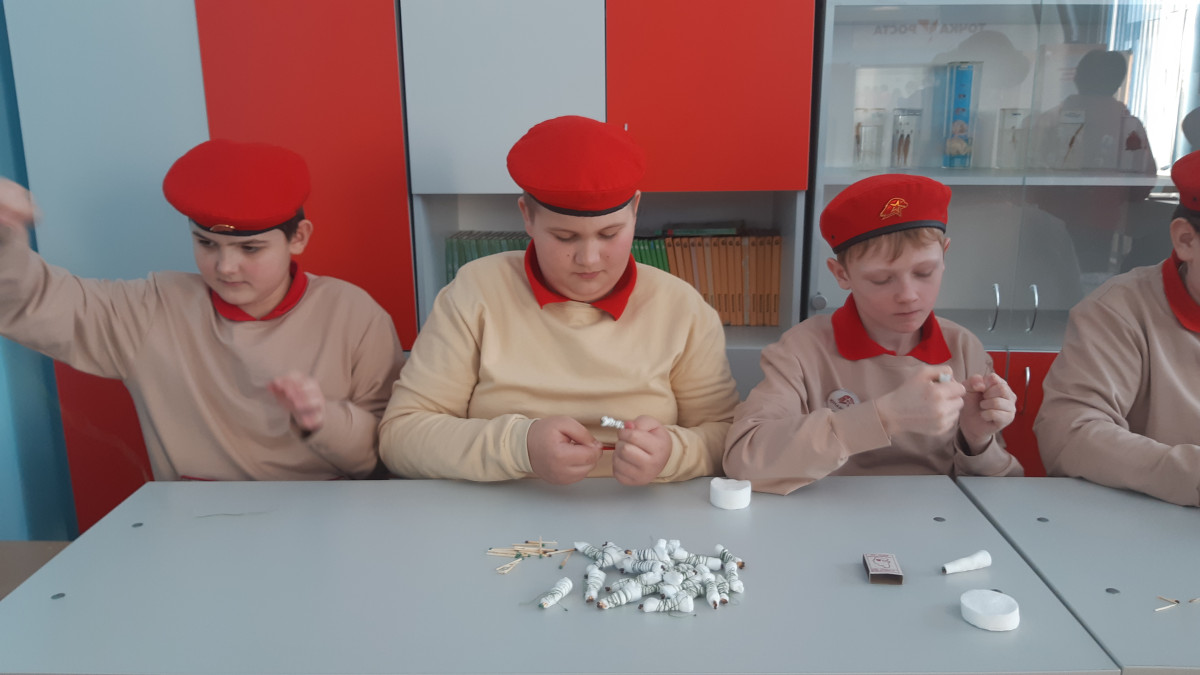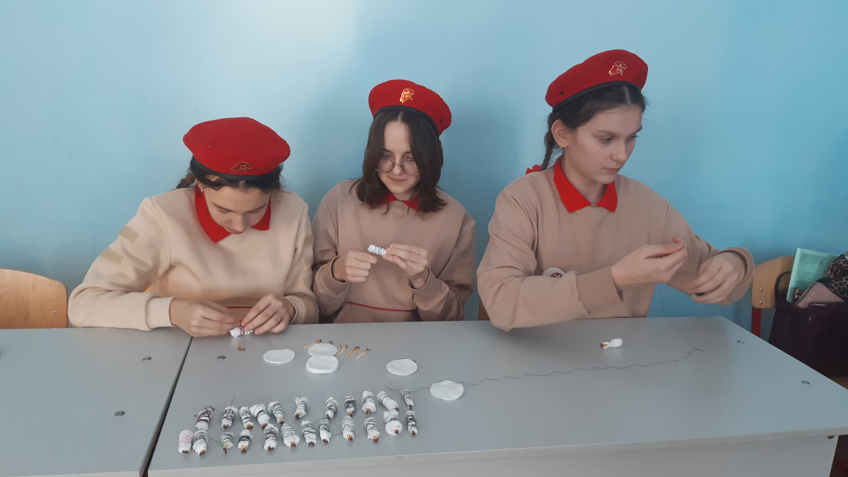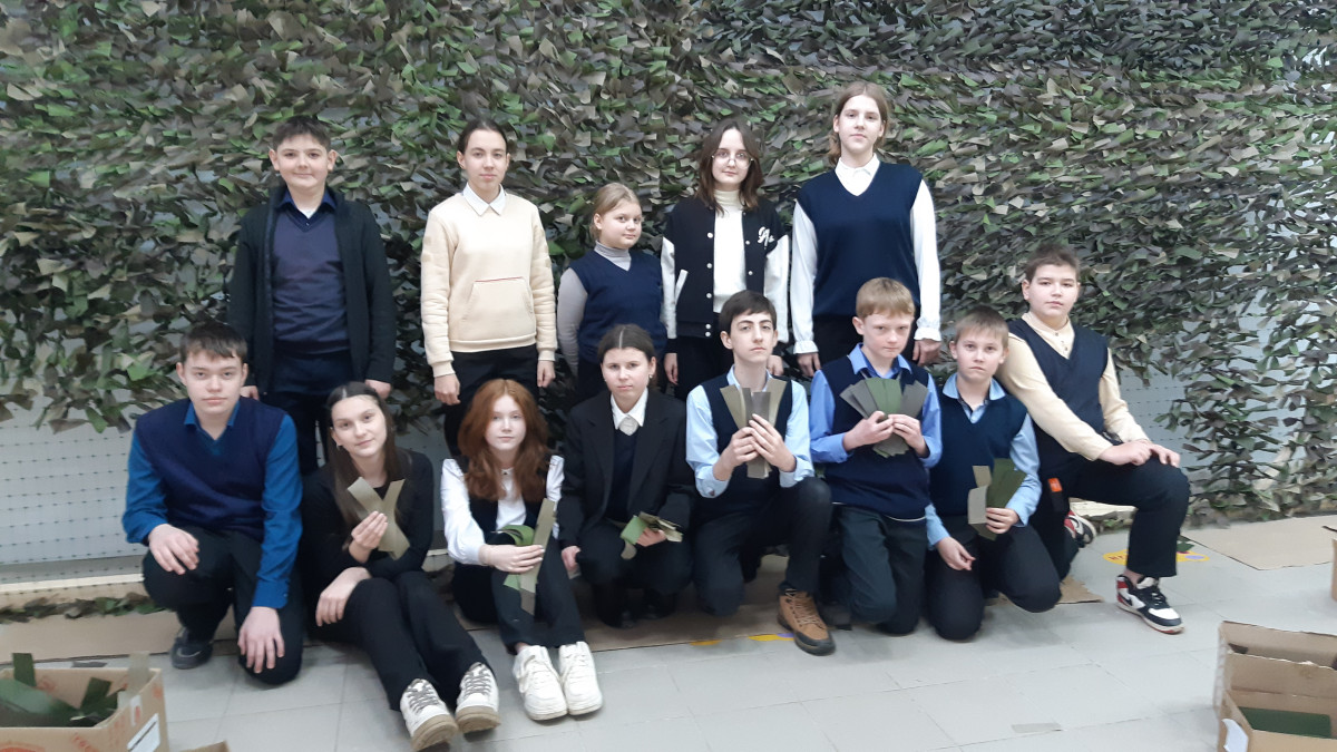 Шестиклассники с большим интересом посмотрели фильм «Город крылатого коня». После обсуждения пришли к выводу, что вдохновение – это умение приводить себя в рабочее состояние, ярко и полно проявлять свою духовную сущность. Идея социальной практики возникла у ребят сразу - они решили, что примут участие в помощи старшим по плетению маскировочных сетей и изготовлении розжигов для участников СВО.