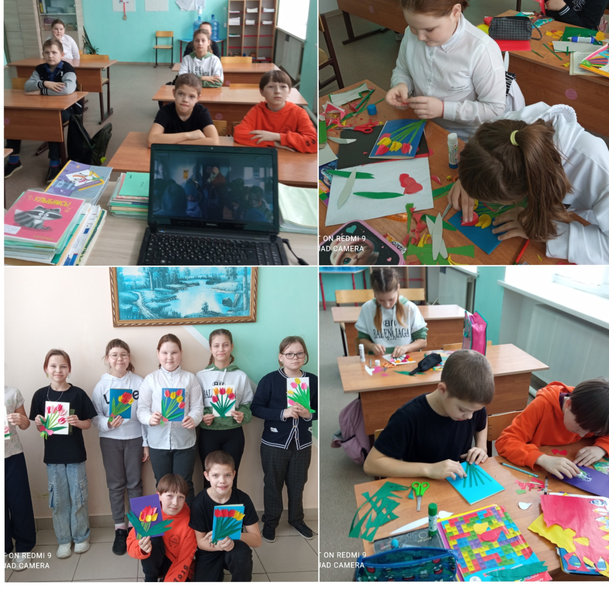 Инициатива исходила от ребят. Решили организовать творческую мастерскую по изготовлению поздравительных открыток к 8 Марта. В течение нескольких дней ребята старались, вкладывали в работы частичку тепла и любви. к концу недели открытки были готовы.