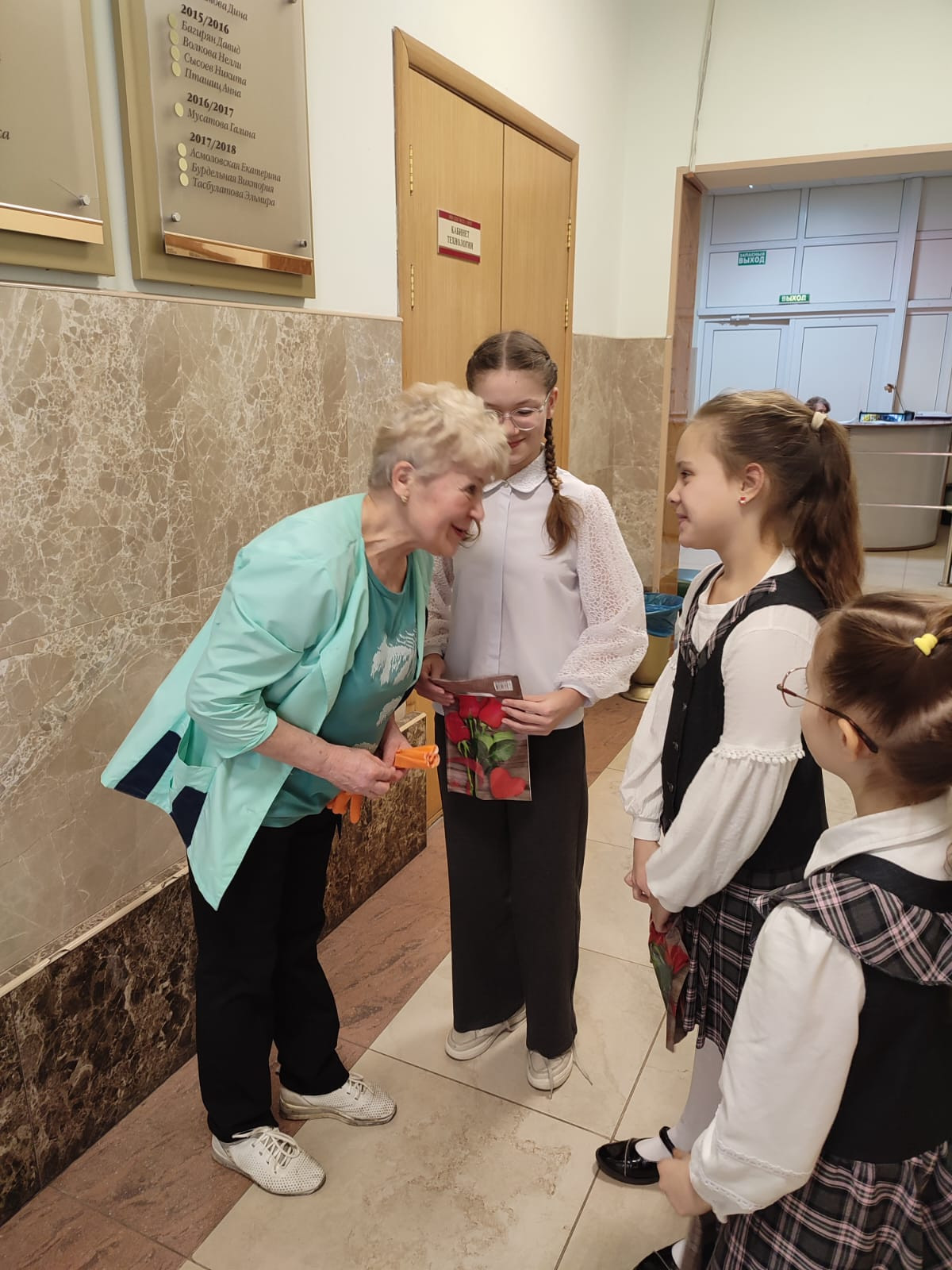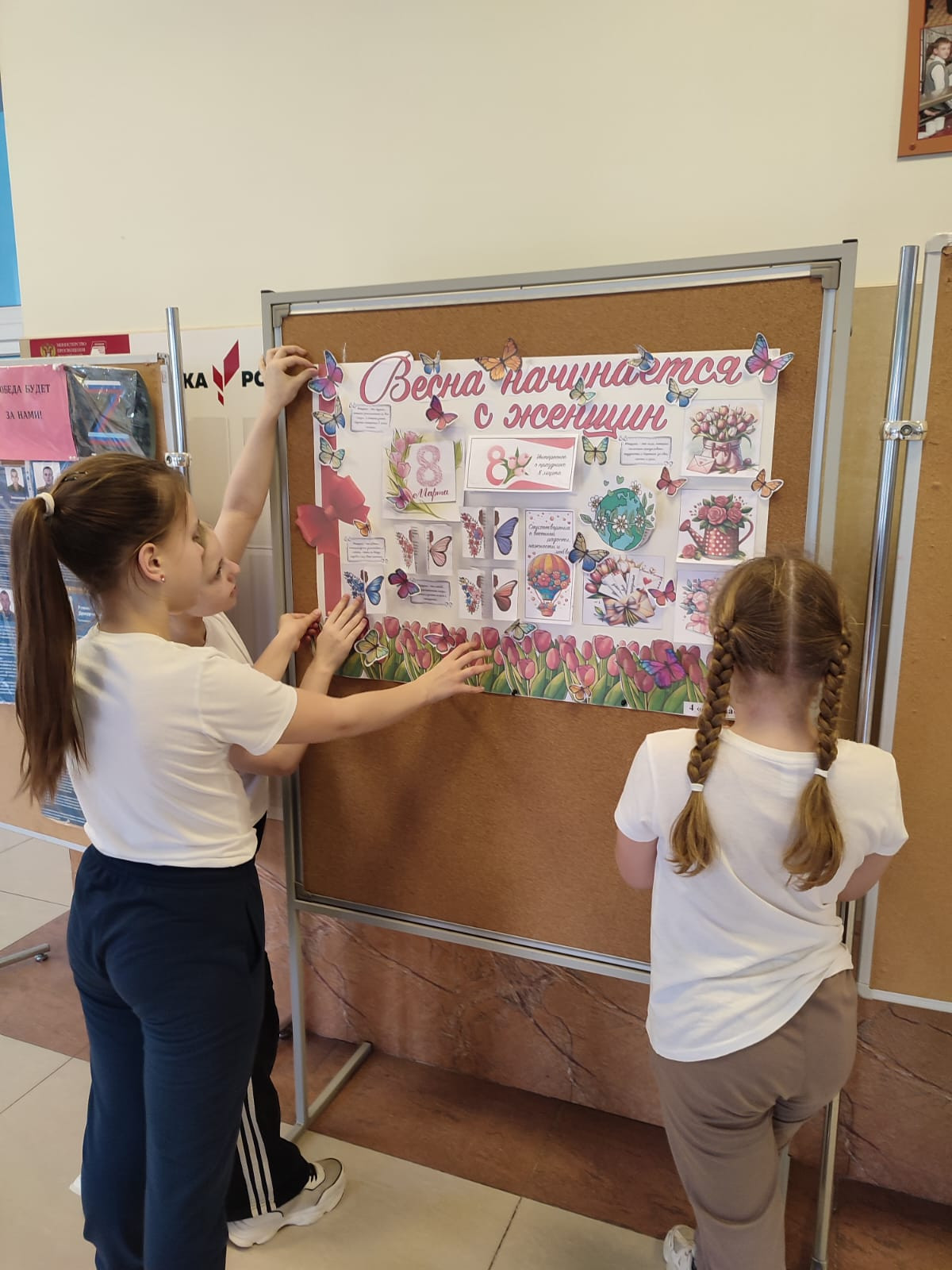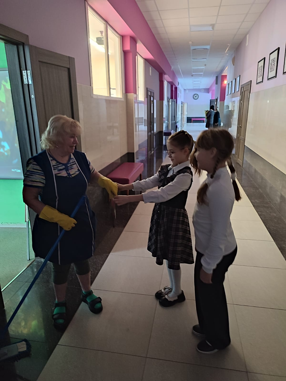 Ученики заметили, что технические работницы заполняют какие-то листы на стене в туалетных комнат, в раздевалке, в столовой. Дети предложили подарить им шариковые ручки к 8 Марта. Один из родителей проспонсировал эту акцию.