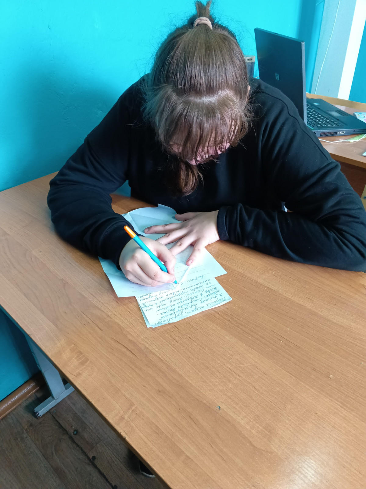 Мы посмотрели фильм "Счастливые люди" о детях, которые уже 10 лет живут там, где идет война. Некоторые из них иной жизни не знали. Приэтом они пишут стихи и поют песни, а в самые тяжёлые моменты играют на скрипке. Эти дети острее других чувствуют и понимают, что самое важное и самое главное - это любить друг друга и уметь быть счастливыми, несмотря ни на что. Именно этому они хотят научить взрослых, которым намного сложнее пережить ужасы войны и боль потерь. Сейчас война на устах каждого человека. Мы всем классом решили написать письма на войну. Счастье нельзя найти найти снаружи, оно внутри нас, в нашем сердце. И живет там, когда мы что-то делаем для других людей, для своей Родины.