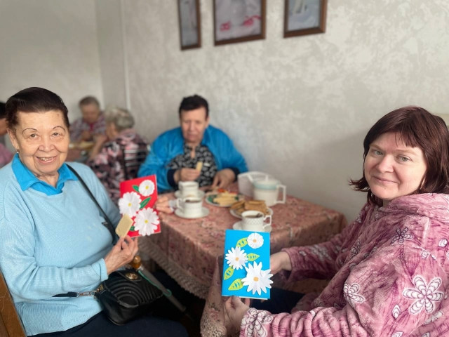 Было сделано много поздравительных открыток Родители приготовили печенье, чай. А затем они поздравили с праздником 8 марта женщин, находящихся в Сызранском Пансионате. Женщинам больше всего нужны не подарки и вещи, а внимание и участие.