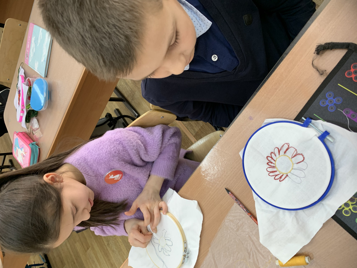 В канун празднования 8 Марта учащиеся рисовали портрет мам, вышивали салфетки, изготовили поделки и оформили поздравительный стенд.