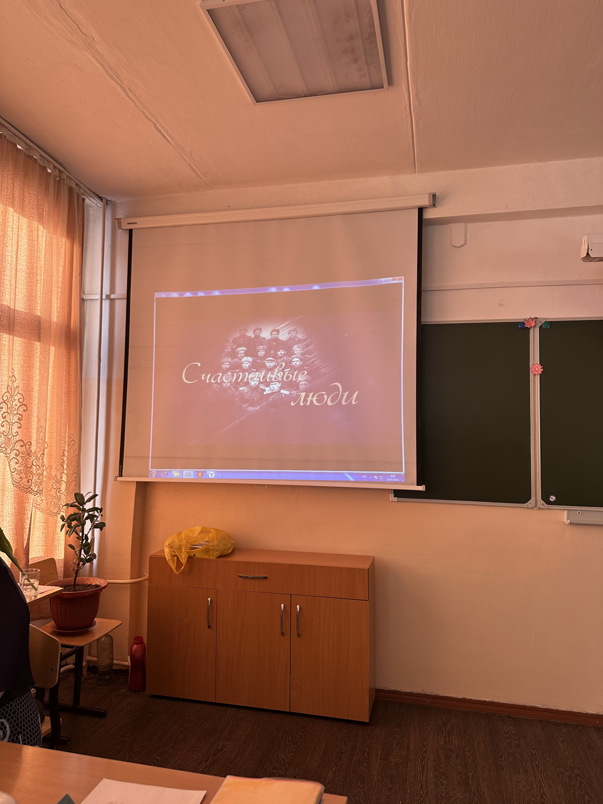4 марта мы с классом посмотрели фильм "Счастливые люди". После просмотра мы обсудили фильм, провели беседу и приняли решение о том, что счастливыми поистине могут быть только те дети или люди, которые совершают добрые поступки. В предверии 8 марта ребята сходили в фонд "Золотые руки ангела" и поздравили женщин с наступающим 8марта, котоые без выходных на добровольной основе плетут сети нашим бойцам. Вручили тюльпаны и показали небольшой концерт. Они были очень благодарны нам. Другая группа ребят приняла участие в акции "Дарение книги детям сиротам", мы собрали в классе книги и подарили их детскому дому, а также было принято решение помочь пожилым людям очистить территорию в их дворе, а несколько мальчиков посыпали солью дорожки, где был лед, девочки из нашего класса покормили птиц, развесив кормушки на деревьях, а остальные ребята сходили в начальную школу на большой перемене и поиграли в различные игры с малышами. Вот такие добрые поступки мы совершили всем классом после просмотра фильма, в этот раз никто не остался в стороне. Все были счастливы.