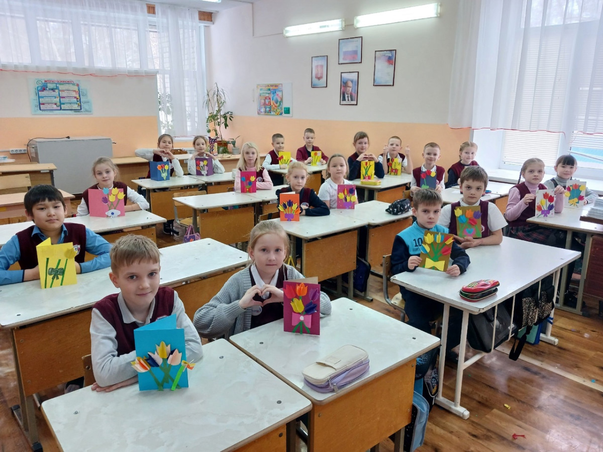 В процессе изготовления открыток, в классе воцарилось предпраздничное настроение 💐