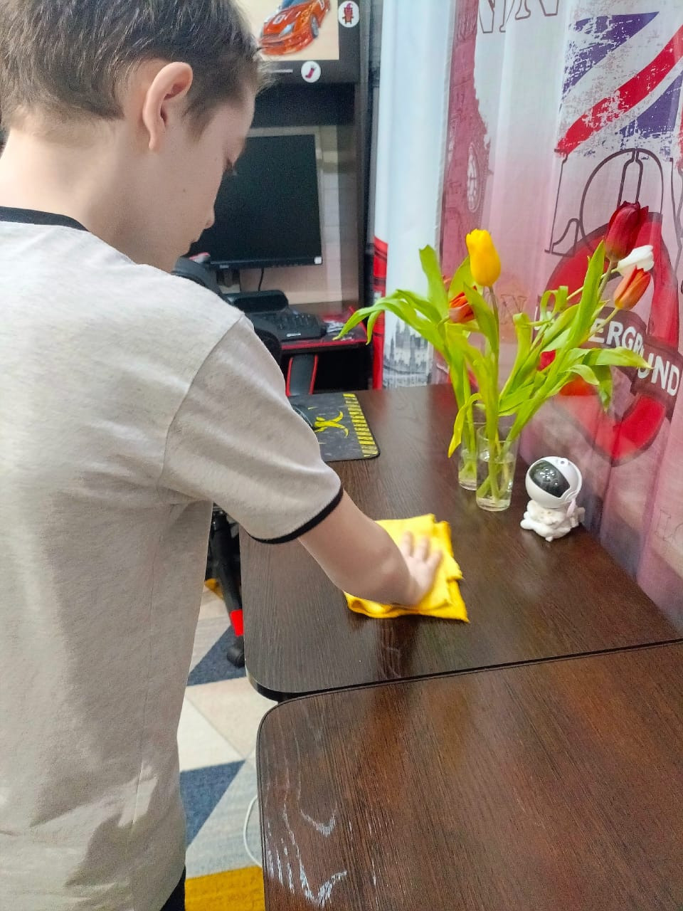В преддверии 8 марта ребята решили помочь убраться в кабинете и у себя дома.