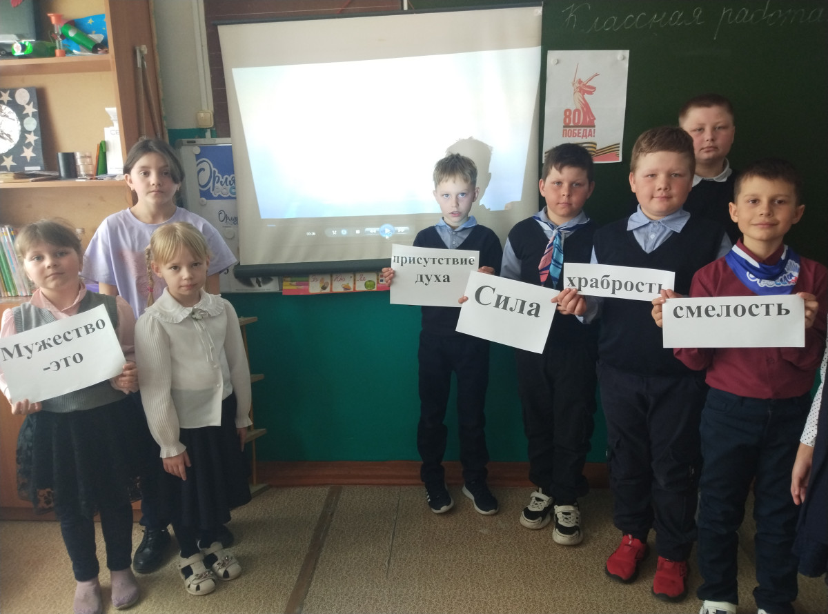 В рамках Всероссийского проекта «Киноуроки в школах России» учащиеся начальных классов посмотрели фильм «Шайба». Перед просмотром ребята ответили на вопросы, какого человека мы называем мужественным? Что такое мужество? С чего и когда начинается мужество? Вспомнили поговорки о мужестве и выяснили, что мужество нужно и в каждодневной жизни.