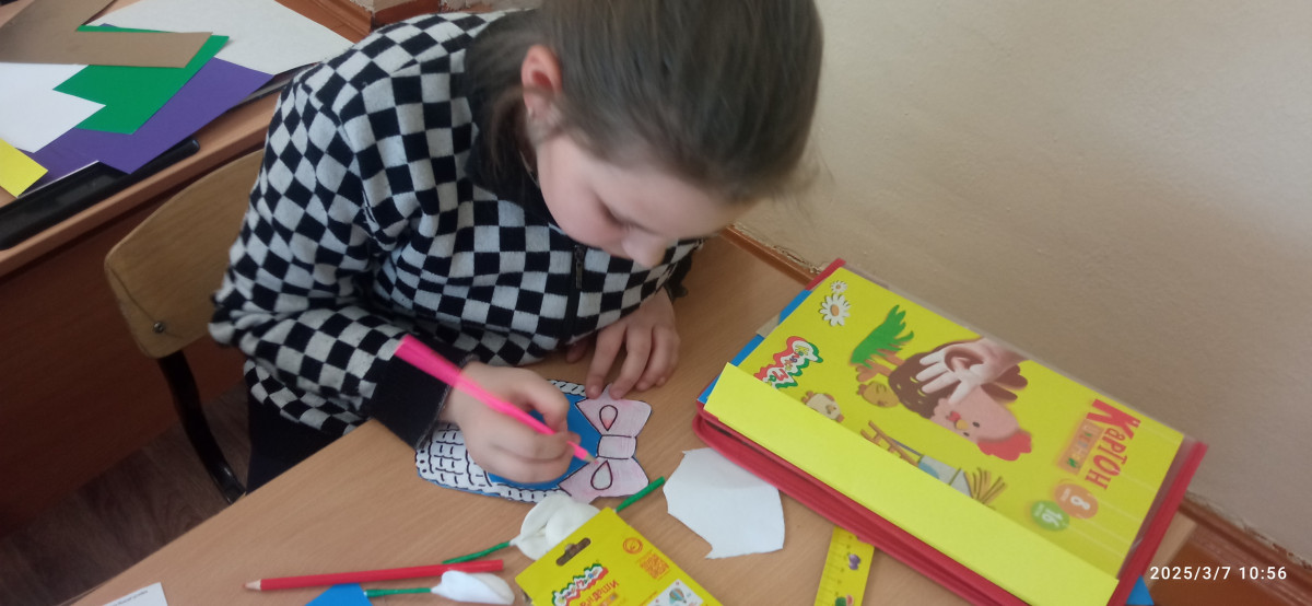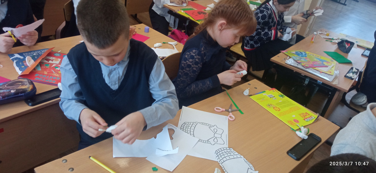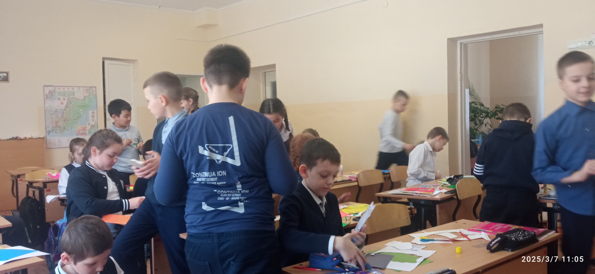 Идея проведения социальной практики принадлежит самим учащимся. Они решили проявить внимание к женщинам, работающим в школе. В преддверии женского праздника в классе и дома, вместе с родителями, ребята готовили открытки для учителей и уборщиц. Организовали группы, которые давали идеи по оформлению открытки. Никитина Софья, Загуменнова Элина, Мурадян Мариам помогали тем ребятам, у кого что-то не получалось.