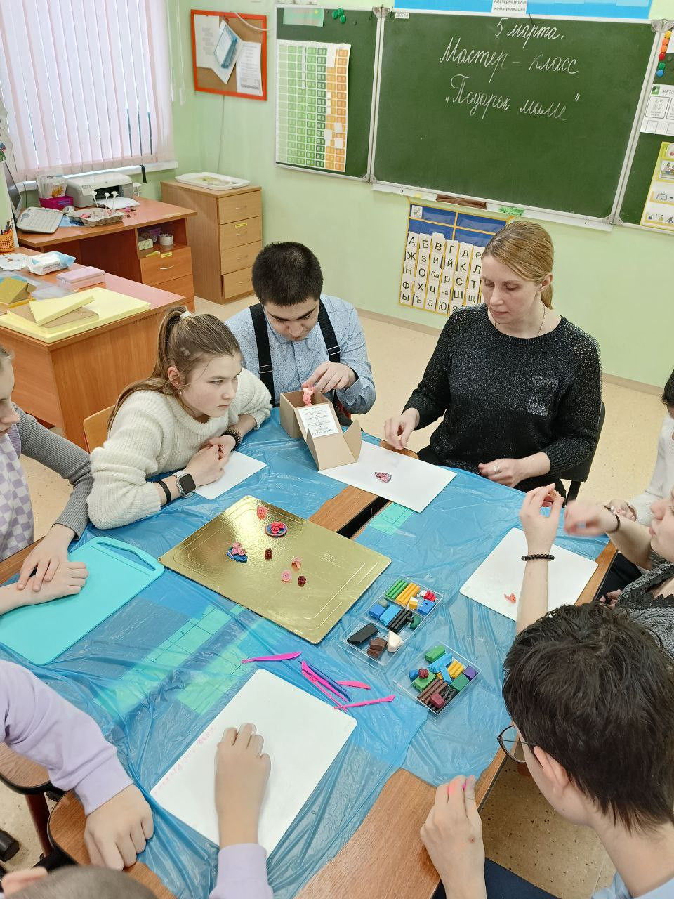 После просмотра и обсуждения фильма от ребят первого варианта обучения поступило преложение сделать подарки мамам, бабушкам не в виде простых открыток, а украшения из полимерной глины. Мастер-класс по нейролепке и изготовлению настоящих брошек провели для ребят второго варианта обучения старшеклассники. Получились настоящие милые подарки для близких. Ребята выступили с инициативой создания кружка по нейролепке в школе, чтобы создавать изделия и устраивать благотворительные акции.