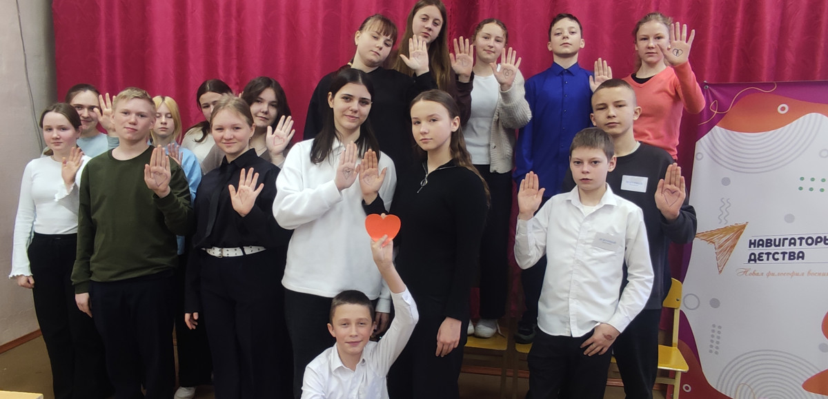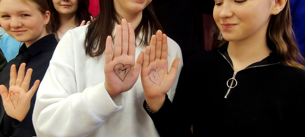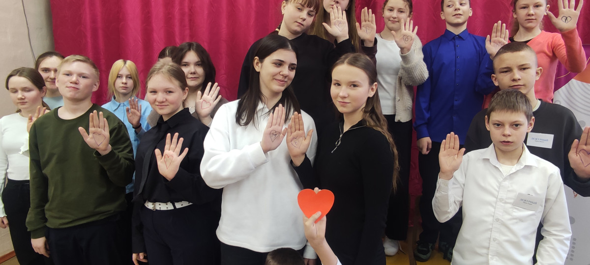 После просмотра и обсуждения фильма дети решили выразить свою поддержку тем, кто переживает трудные времена. Они нарисовали сердечки и написали слова «МЫ С ВАМИ!», демонстрируя свою солидарность и желание помочь.
