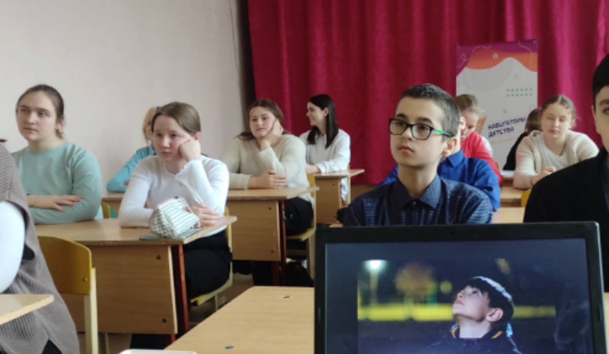 Ученики 7-б класса посмотрели трогательный фильм «Счастливые люди», который рассказывает о детях, живущих в условиях войны на территории Луганской Народной Республики.
