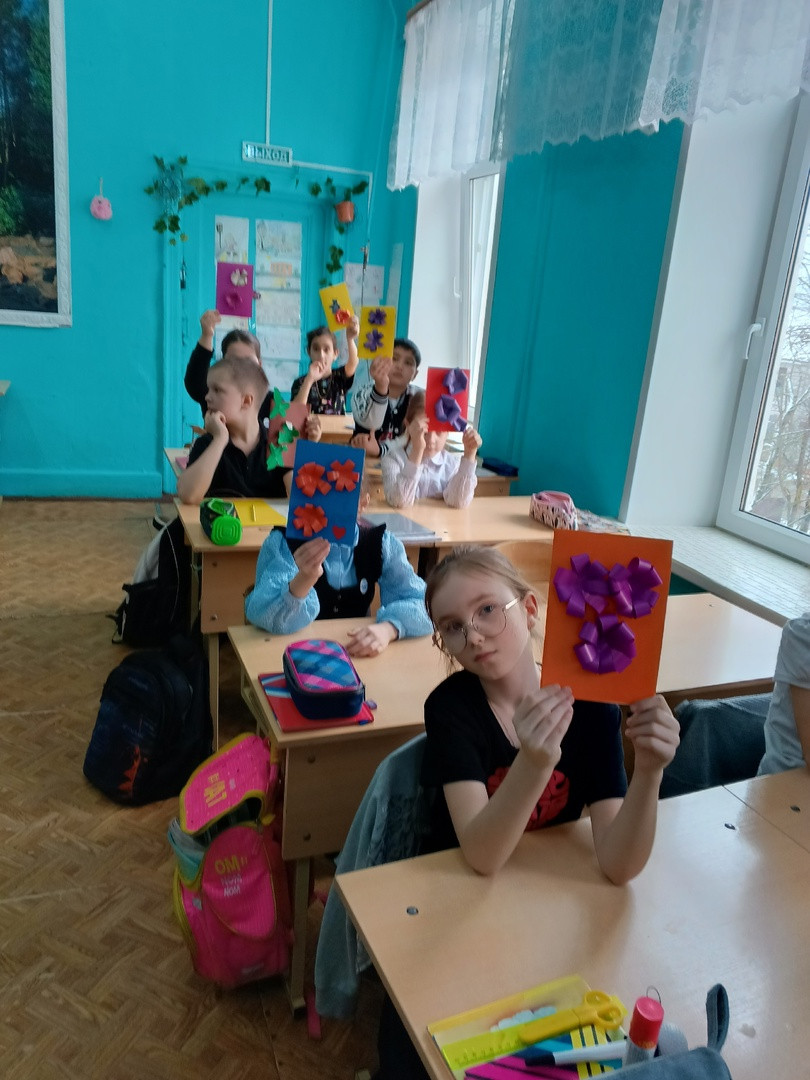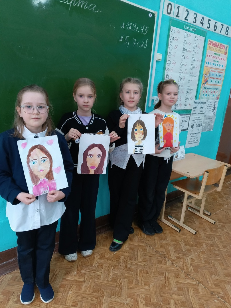 В канун празднования 8 Марта учащиеся рисовали портрет мам, изготовили открытки для мам и бабушек.