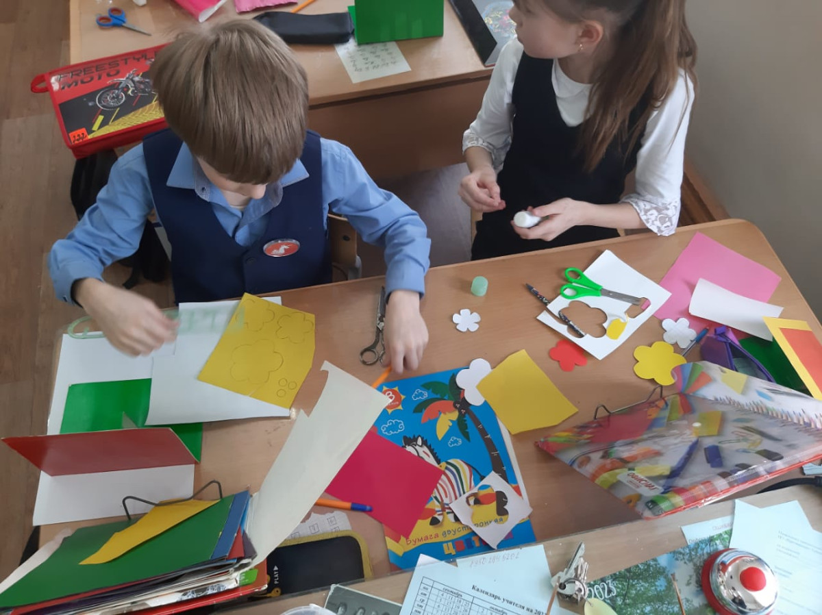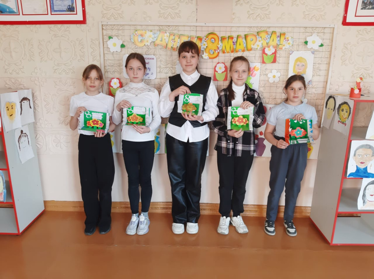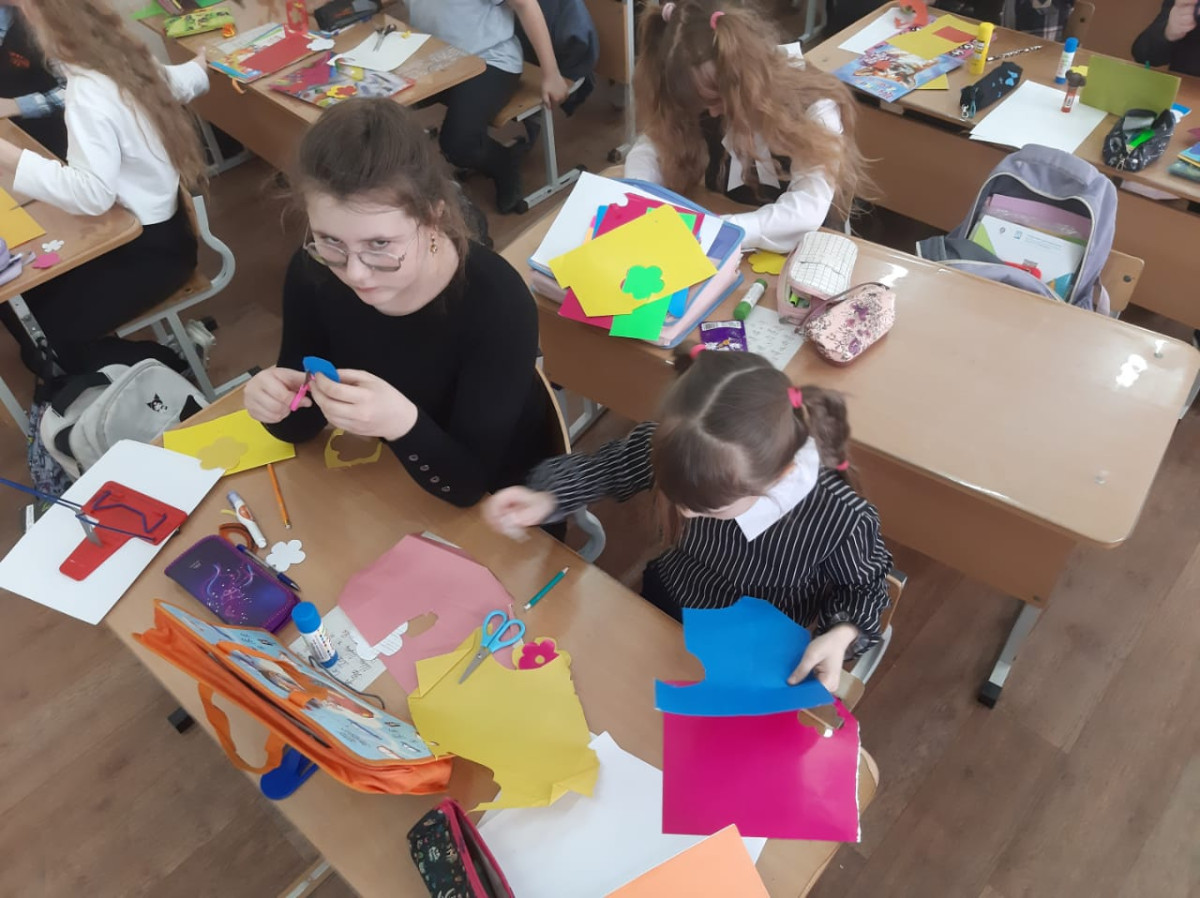 В преддверии праздника 8 Марта учащиеся предложили сделать открытки для мам и бабушек, а так же передать открытки с поздравлениями одиноким пожилым женщинам.