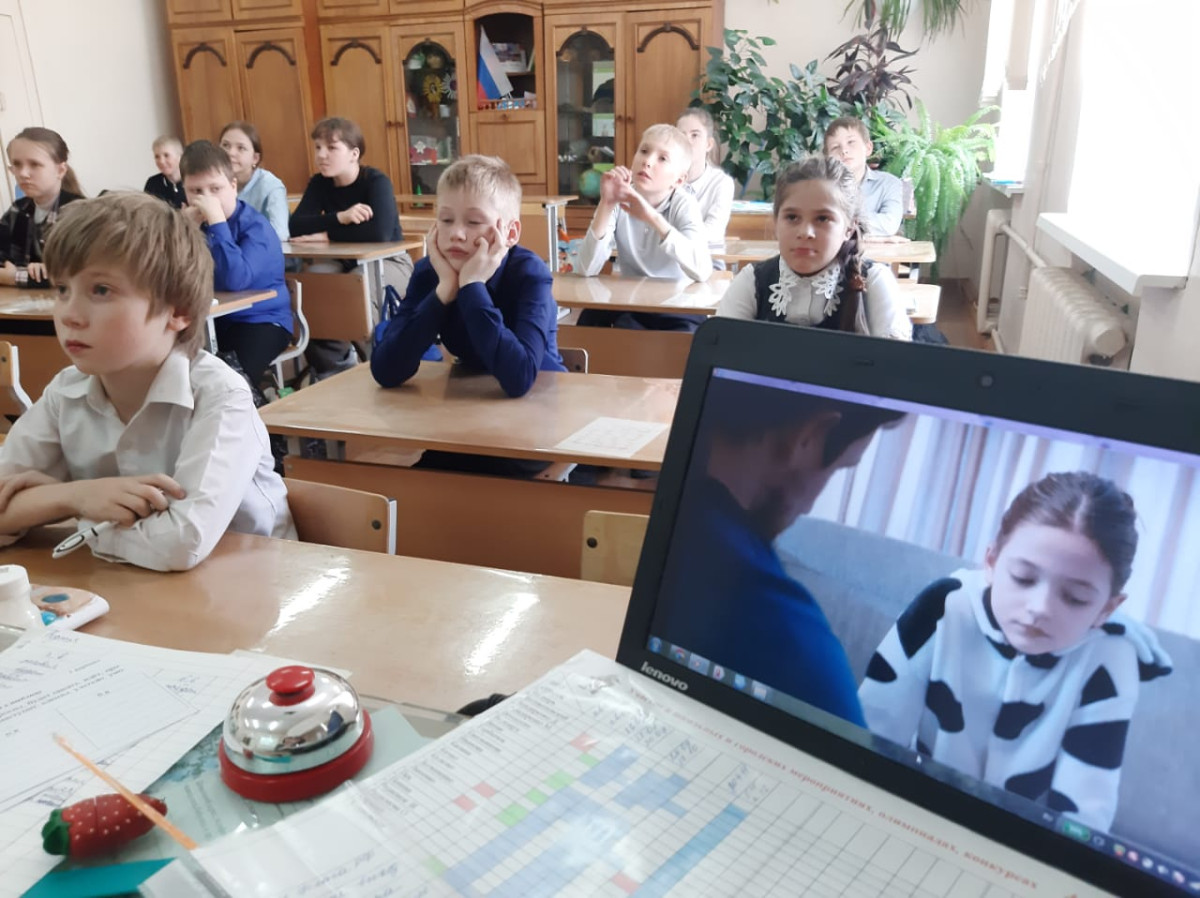 В рамках проекта Киноуроки в школах России, обучающиеся 4 класса посмотрели фильм "8 марта". Фильм знакомит учеников с такими понятиями как «наблюдательность», «внимательность». Как проявляется способность человека быть внимательным и неравнодушным к окружающим их людей.