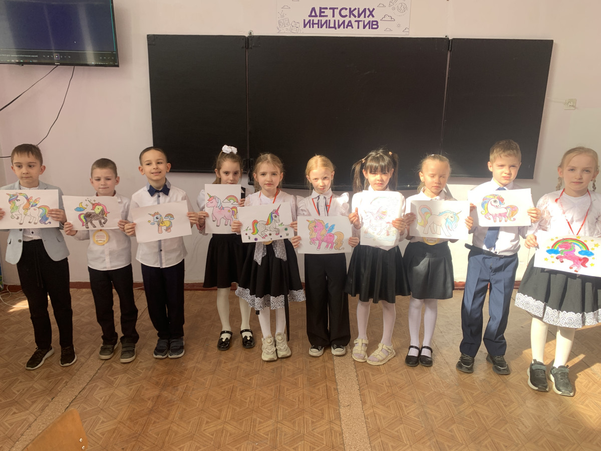 4. Свои рисунки школьники показывали одноклассникам и рассказывали о своих единорогах друг другу.