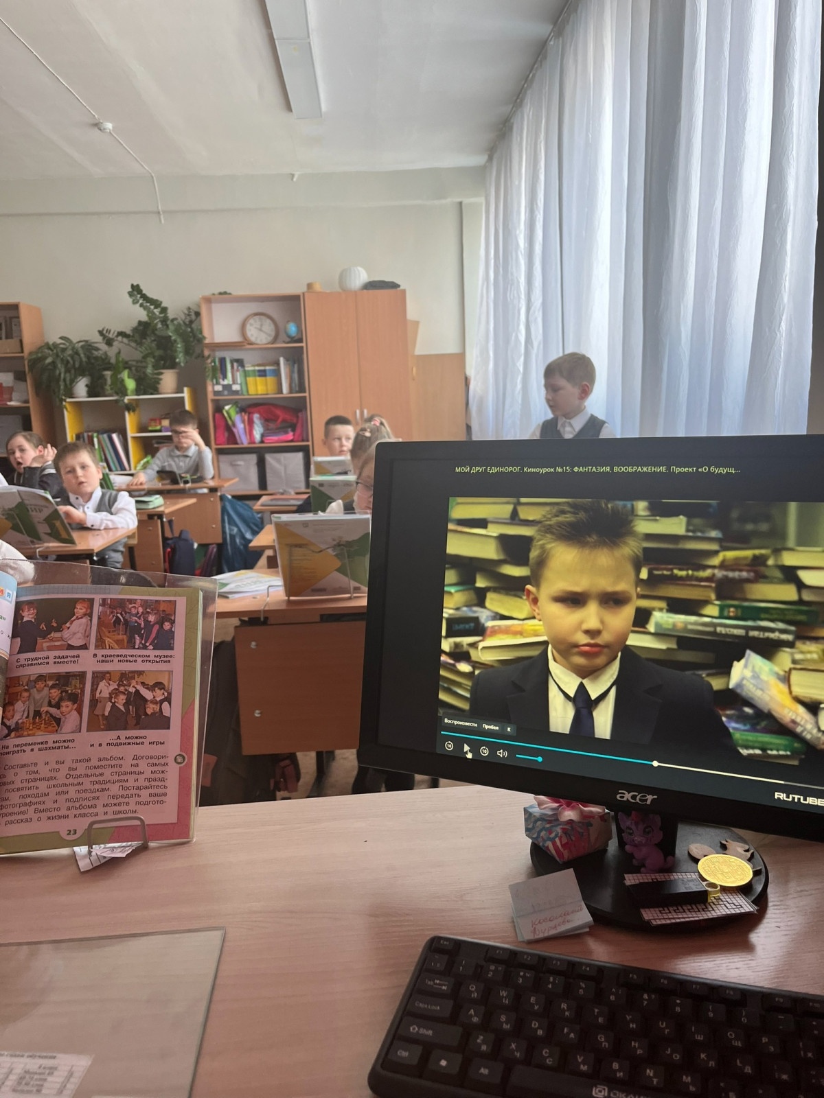 Мой друг единорог, очень позитивно повлиял на эмоции детей, им был очень интересен тот факт, что книги можно превратить в солдатиков. Воображение у детей было настолько веселым, что они свои учебники поставили в ряд и провели марш. При обсуждении фильма выяснилось, что ребята не знали о том, что воображение это одно из качеств человека. Мы поговорили и о других качествах, те что им уже знакомы в этом фильме. Все дружно отметили дружбу и взаимопомощь между героями и учителем. Тогда я им предложила по фантазировать, что бы они придумали такое же доброе и полезное? Мы стали фантазировать и воображать в кабинете превращали свои парты в животных (единороги), и тут Кристина предложила стать птицами и вылететь на улицу. Я подхватила инициативу немного добавив, что пришла весна и прилетят скоро грачи. Тогда ребята и придумали на прощание покормить снегирей, пока они еще не улетели. Вот так мы стали Юннатами Снегирят. Родители нас поддержали и смастерили с детьми кормушки. А Федор даже провел консультацию, как правильно кормить птиц. Сделаные кормушки мы развесили в сквере недалеко от школы. В течение недели, я заметила, что у тех ребят, которые не обвернули учебники, появились обложки на учебниках.