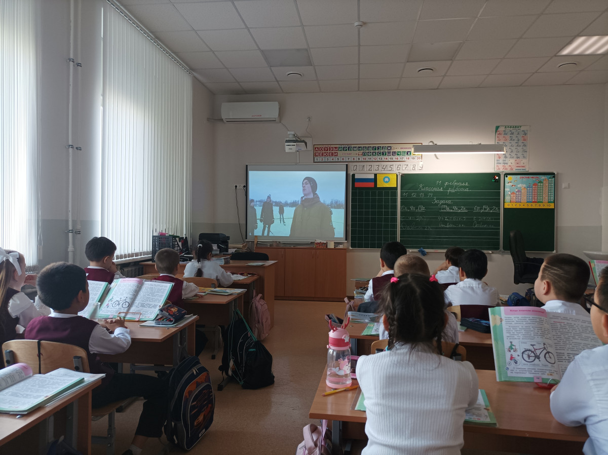 В рамках Всероссийского проекта «Киноуроки в школах России» учащиеся 1 «Б» класса МБОУ «СОШ № 18 им. Б. Б. Городовикова» посмотрели короткометражный художественный фильм «Шайба». После просмотра ребята обсудили основные нравственные понятия: мужество, находчивость, сообразительность, умение доводить начатое дело до конца, не сдаваться, не отступать перед трудностями. Поговорили о героях нашего времени и решили принять участие в акции «Тепло для героя». К выполнению социальной практики дети отнеслись с особой ответственностью. Принесли сладкие угощения, консервы, носки написали добрые слова – поздравления с Днём Защитника Отечества для наших военнослужащих, участвующих в СВО на Украине.